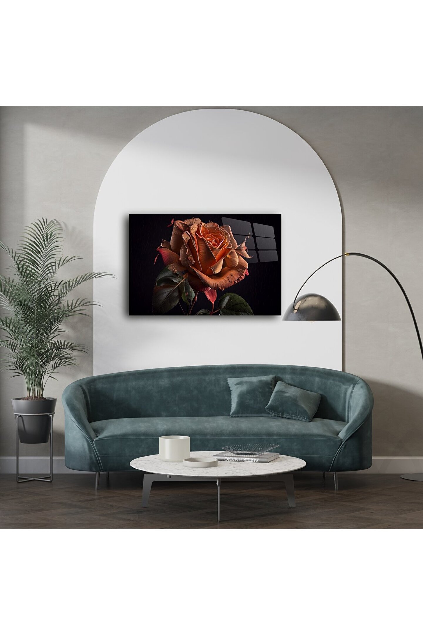 Bu çarpıcı fotoğraf baskısı, siyah arka plan önünde zarif bir gülü göstererek romantizm ve sofistike bir estetik yaratır. Gül yapraklarındaki çiy damlaları, duygusal derinlik ve doğal güzellik katarken, bu sanat eseri modern iç mekanlar için mükemmel bir odak noktasıdır.