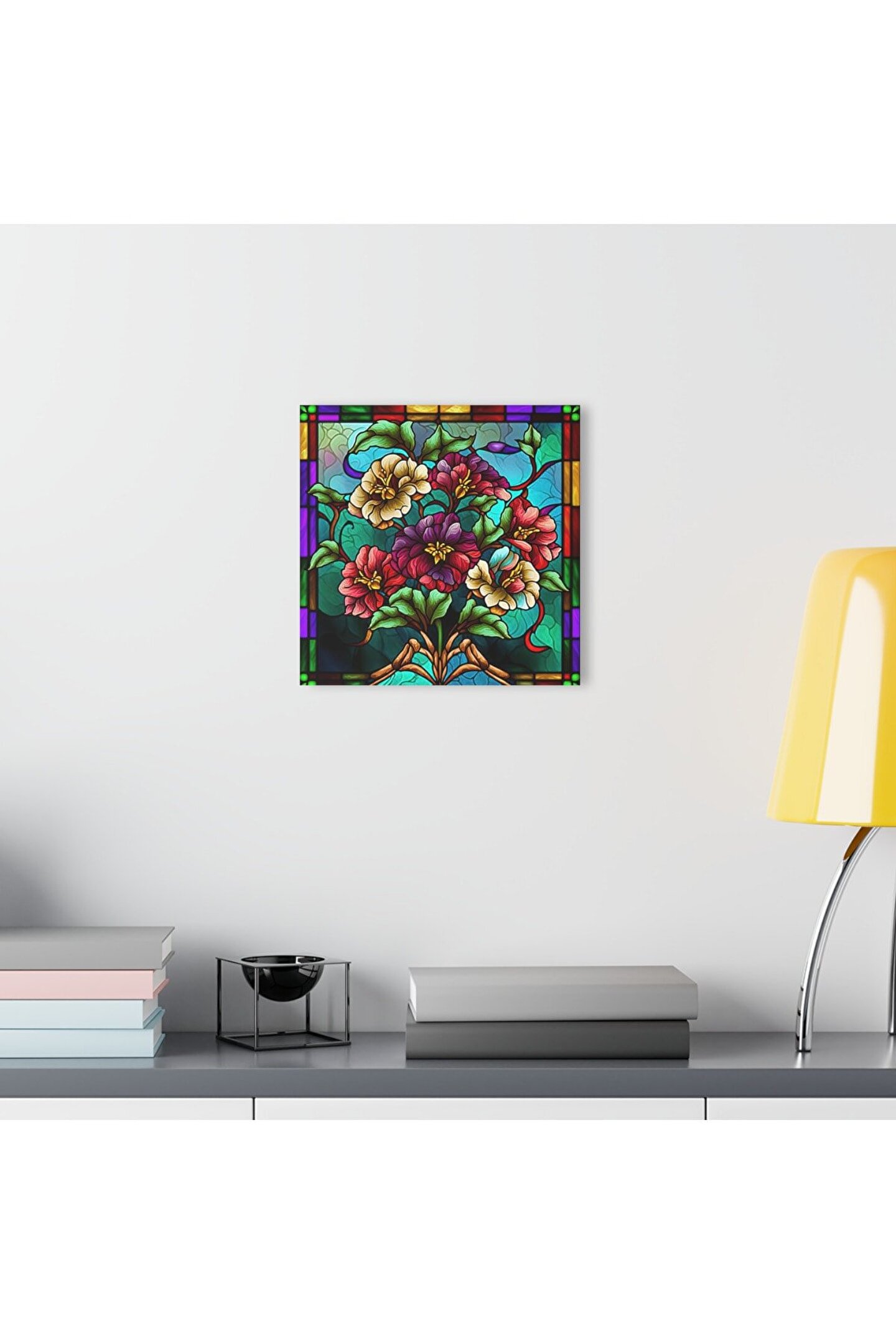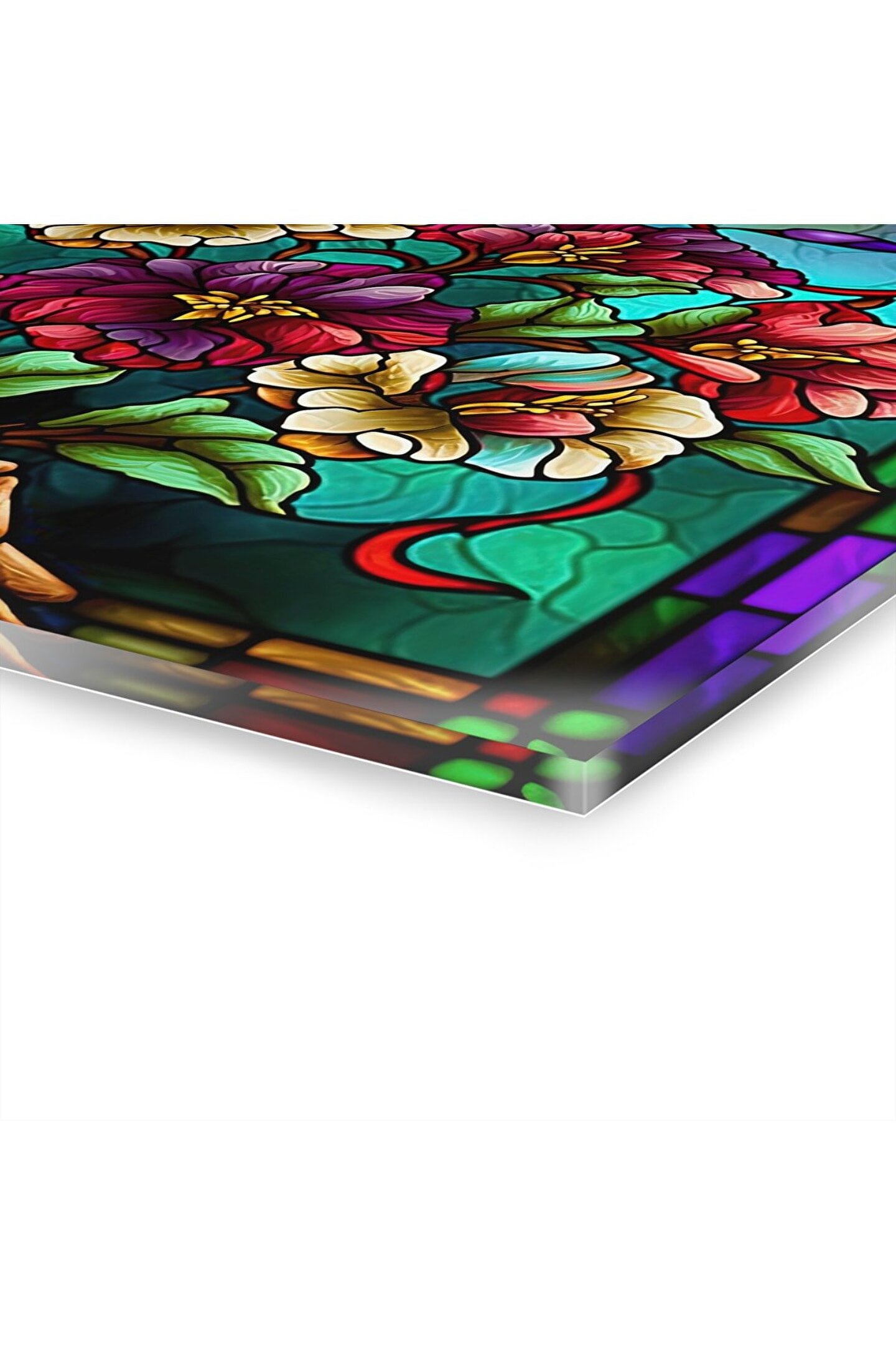 LEYLASER Renkli Çiçekler Cam Tablo Duvar Dekoru 2