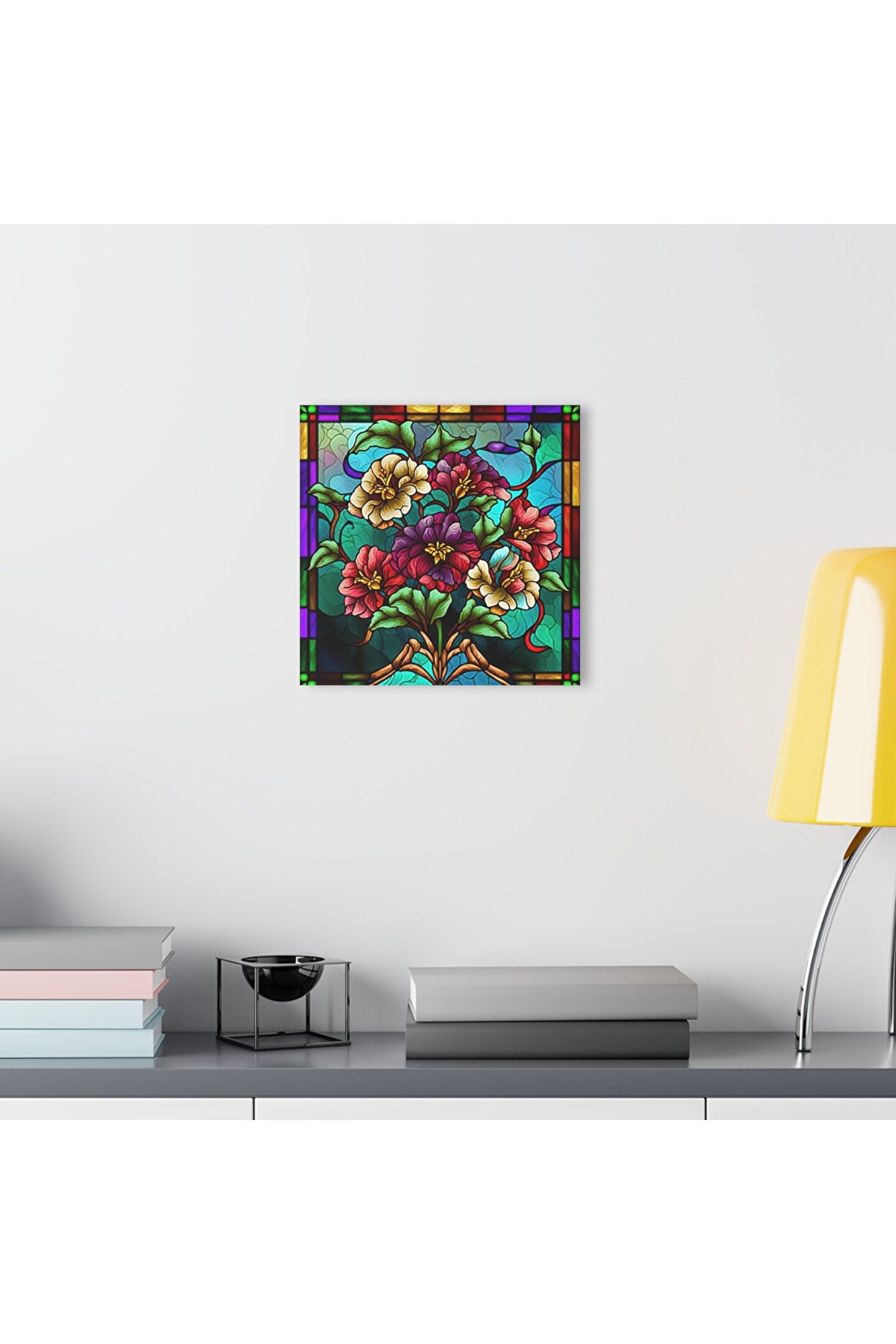LEYLASER Renkli Çiçekler Cam Tablo Duvar Dekoru 2