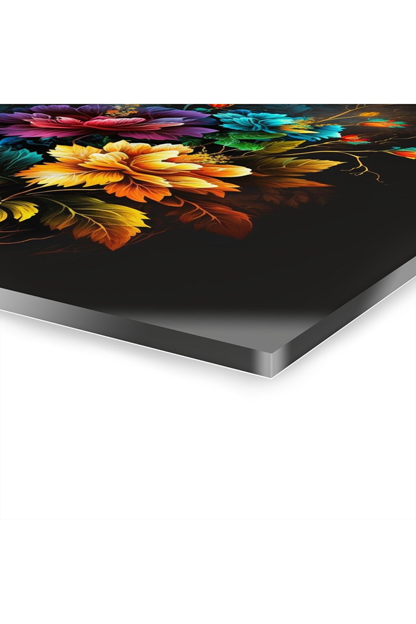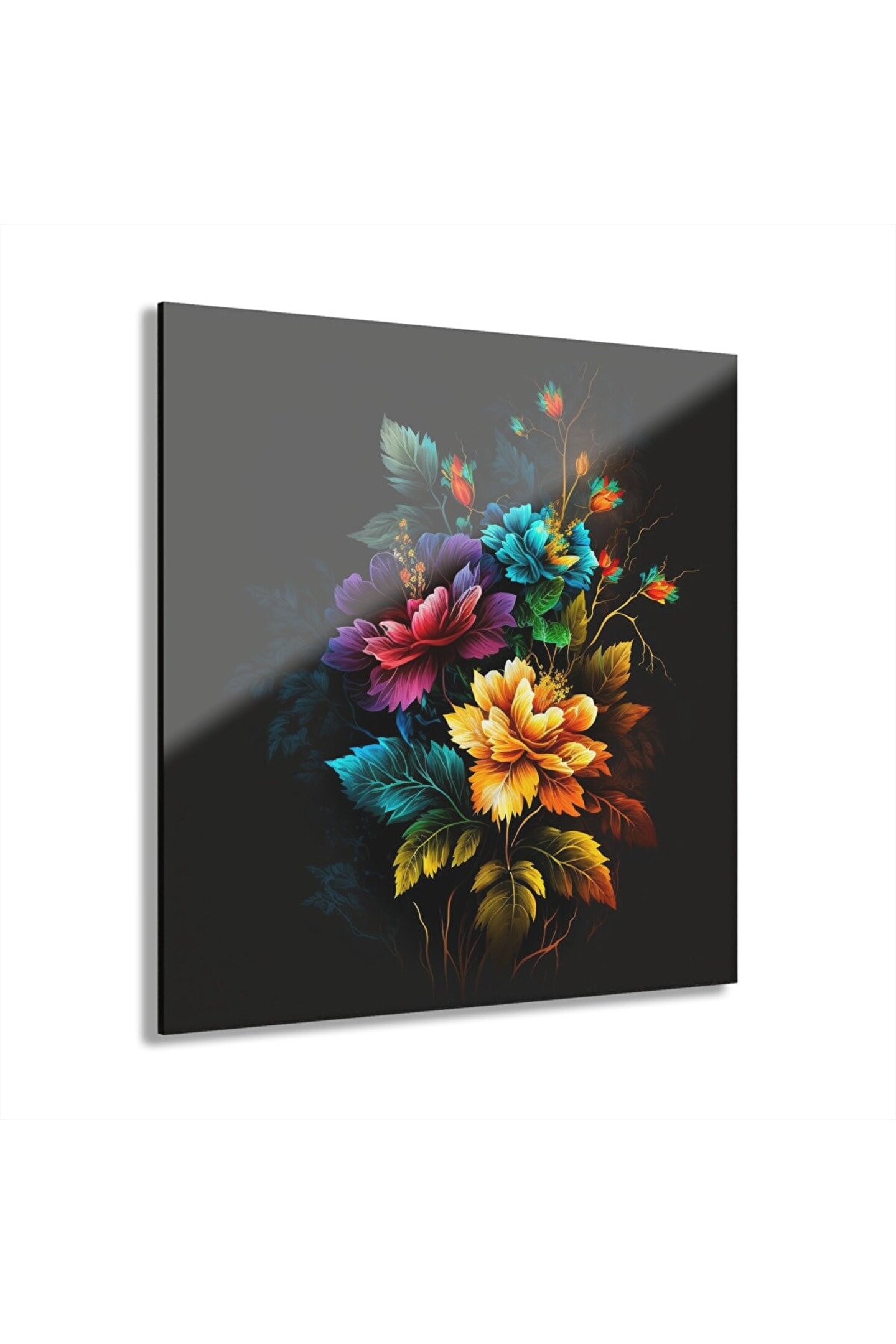 LEYLASER Renkli Çiçekler Cam Tablo Duvar Dekoru 4