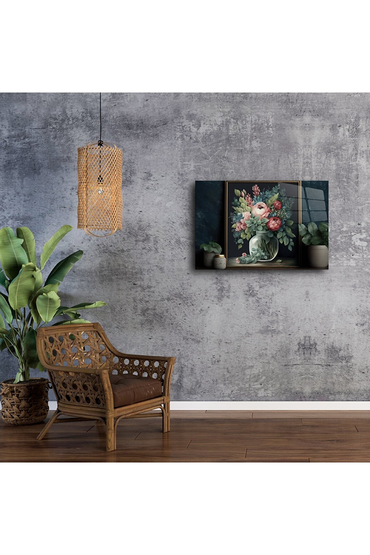 LEYLASER Romantik Çiçek Tablosu Cam Üzeri Baskı