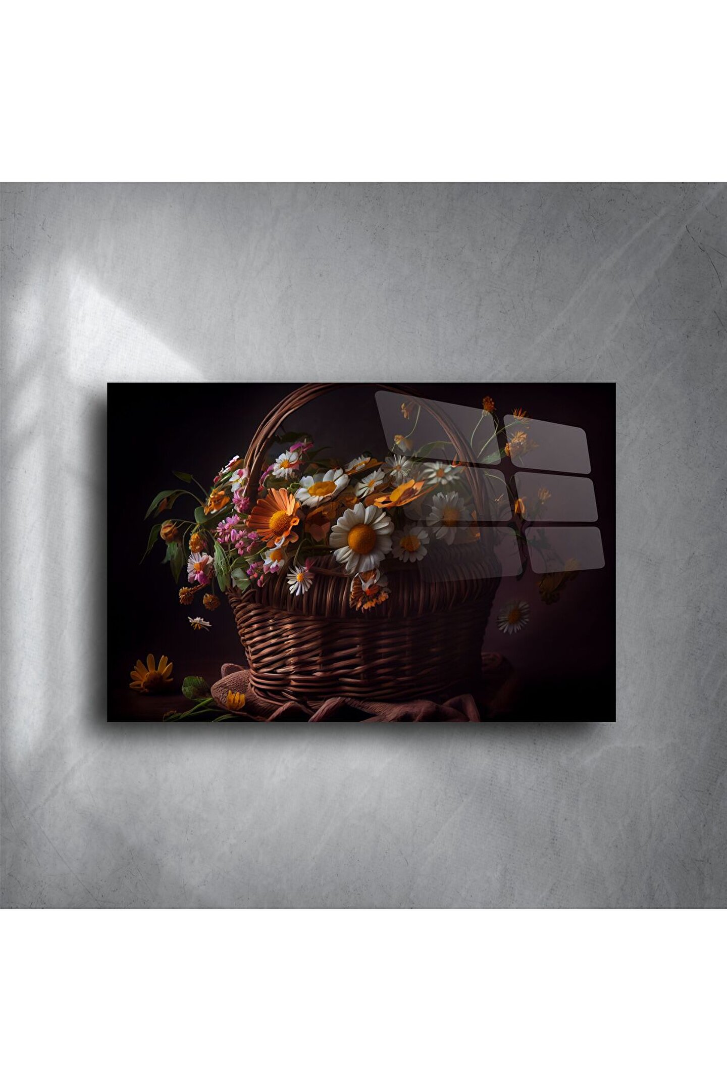 Bu cam yüzeyli rustik tablo, doğal sepet içinde yer alan canlı papatyalar ve bahar çiçeklerinin nostaljik ve huzur veren dokunuşunu duvarlarınıza taşıyor. Çiçeklerin zarafeti ve pastel tonlardaki romantik düzenleme, her bakışta içsel bir ferahlık ve nostaljik mutluluk sunar.