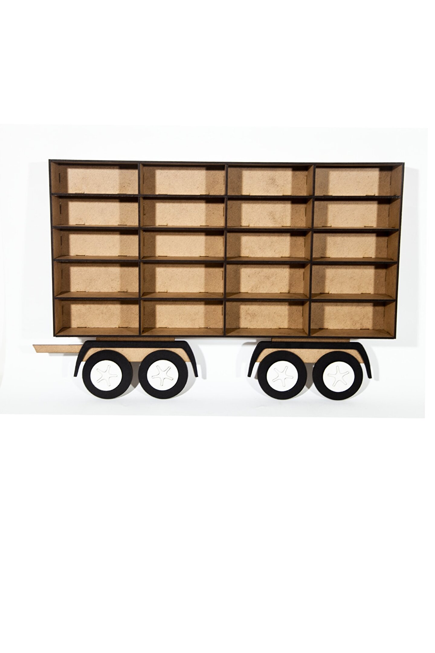 LEYLASER Sadece Arka Vagon Ham Mdf Çocuk Odası Ahşap Kamyon Araba Rafı 20 Arabalık
