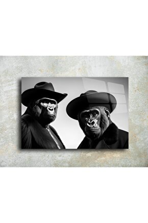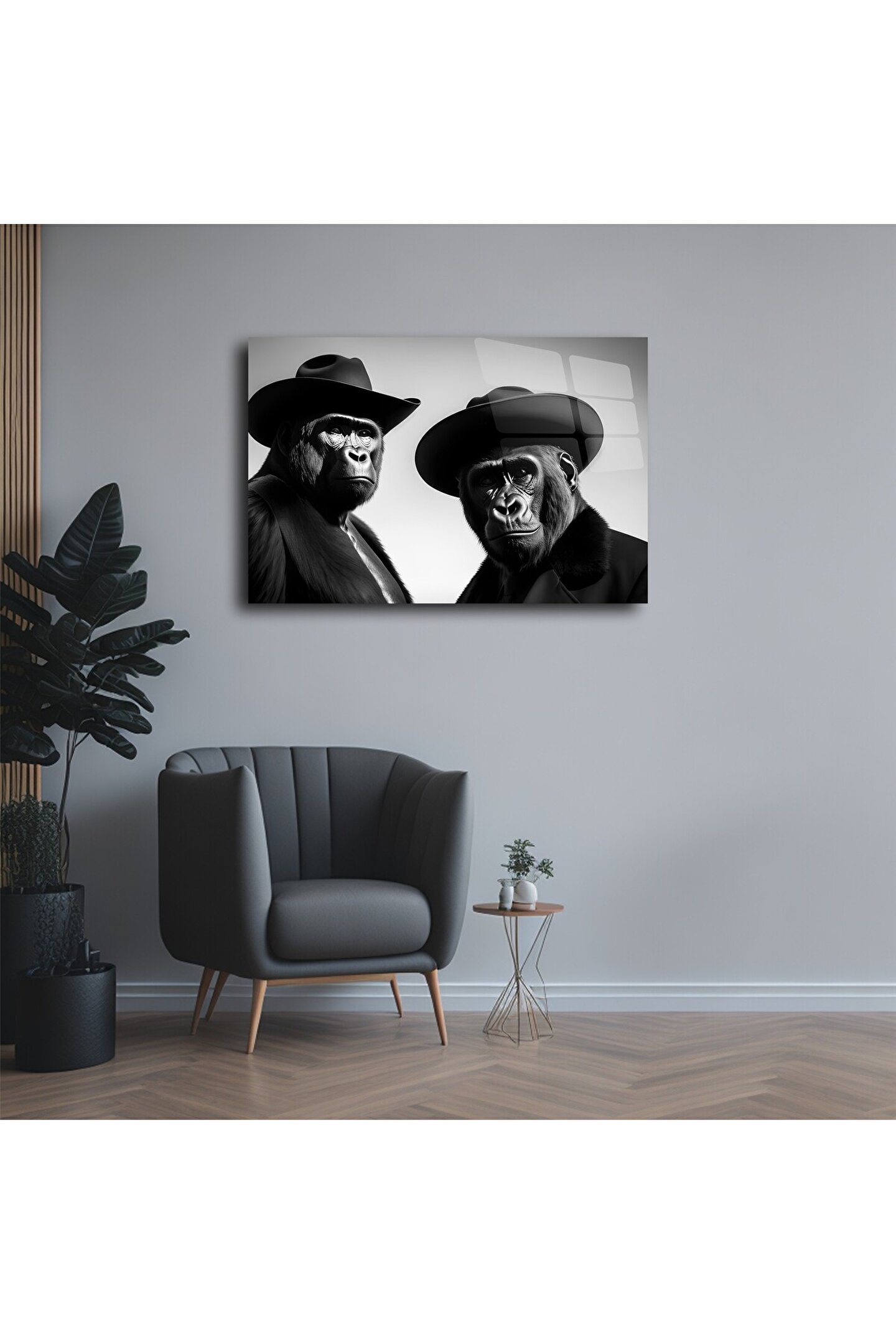 LEYLASER Şapkalı Goril Cam Tablo Duvar Dekoru