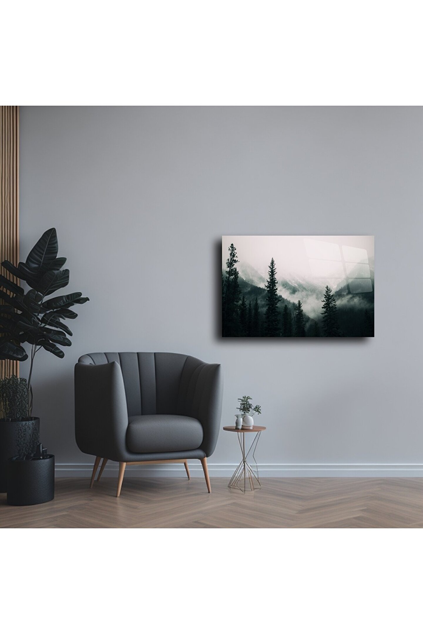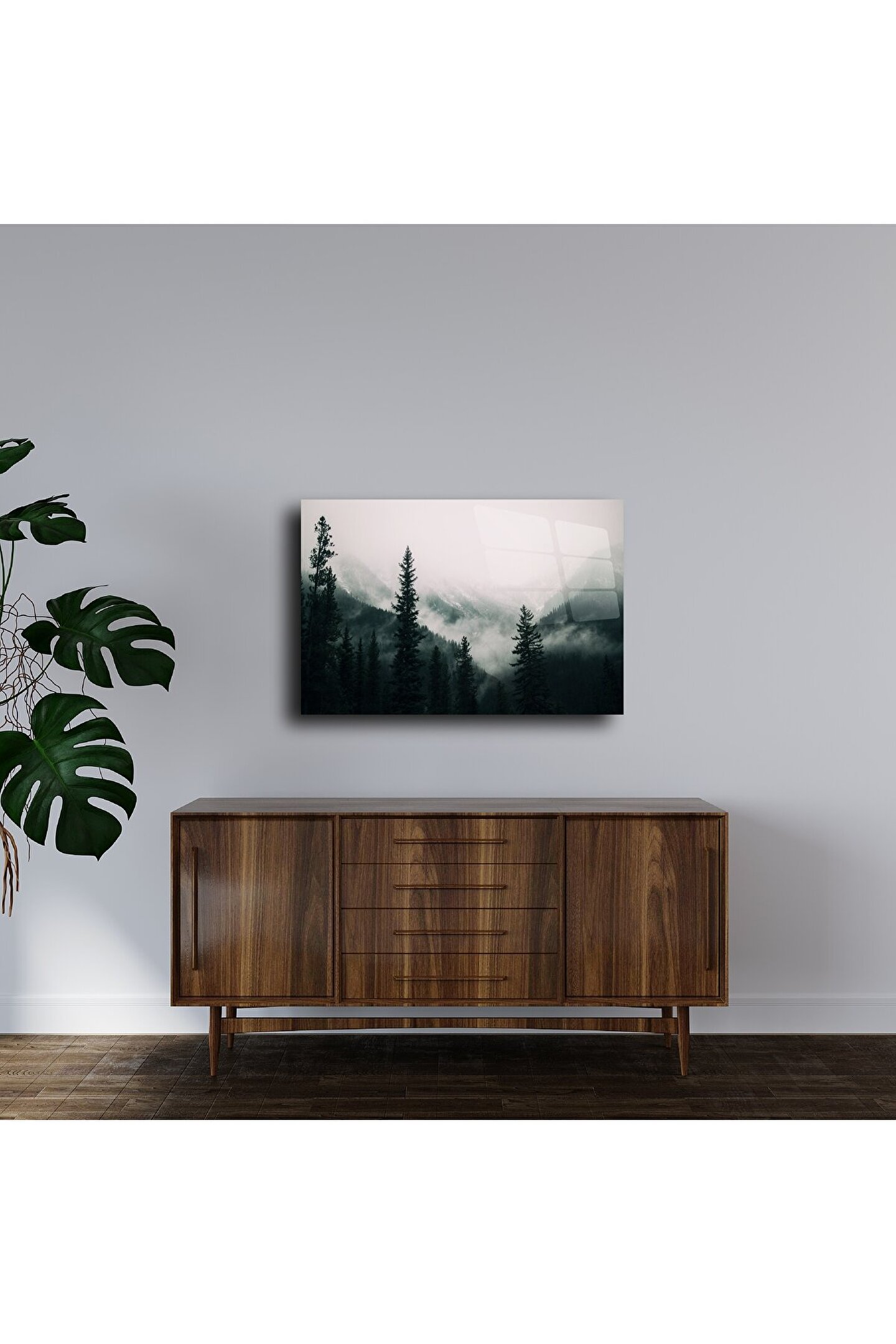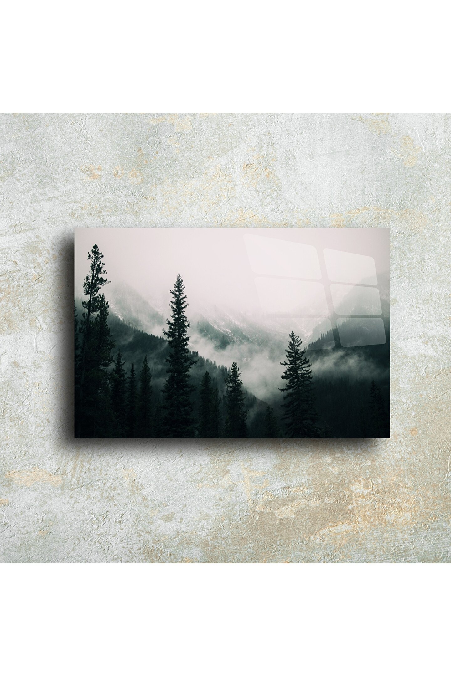 Sisli ormanların huzurlu sessizliğine adım atın. Bu Cam Orman Tablosu, çam ağaçlarının arasından süzülen puslu dağ manzarası ile doğayla derin bir bağ kurmak isteyenler için tasarlandı. Yüksek parlaklığa sahip temperli cam üzerine baskı, çağdaş ve şık bir görünüm sunarak ister rustik bir dağ evinde ister şehirde minimalist bir loftta şıklığıyla öne çıkar.