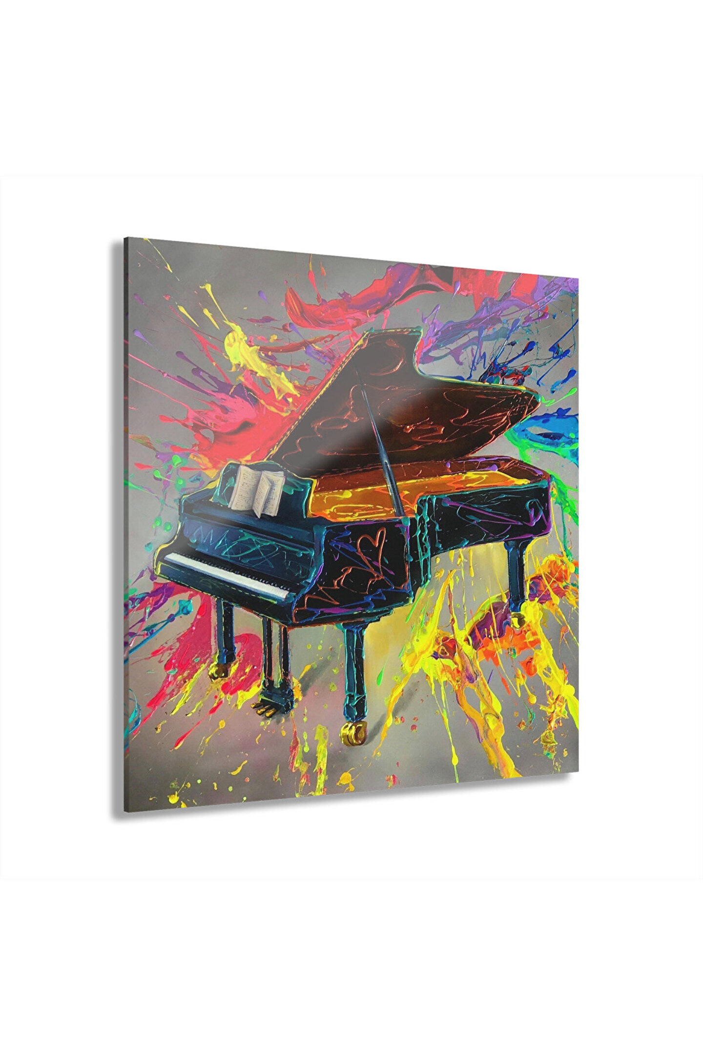 LEYLASER Sulu Boya Efektli Piyano Cam Tablo Duvar Dekoru