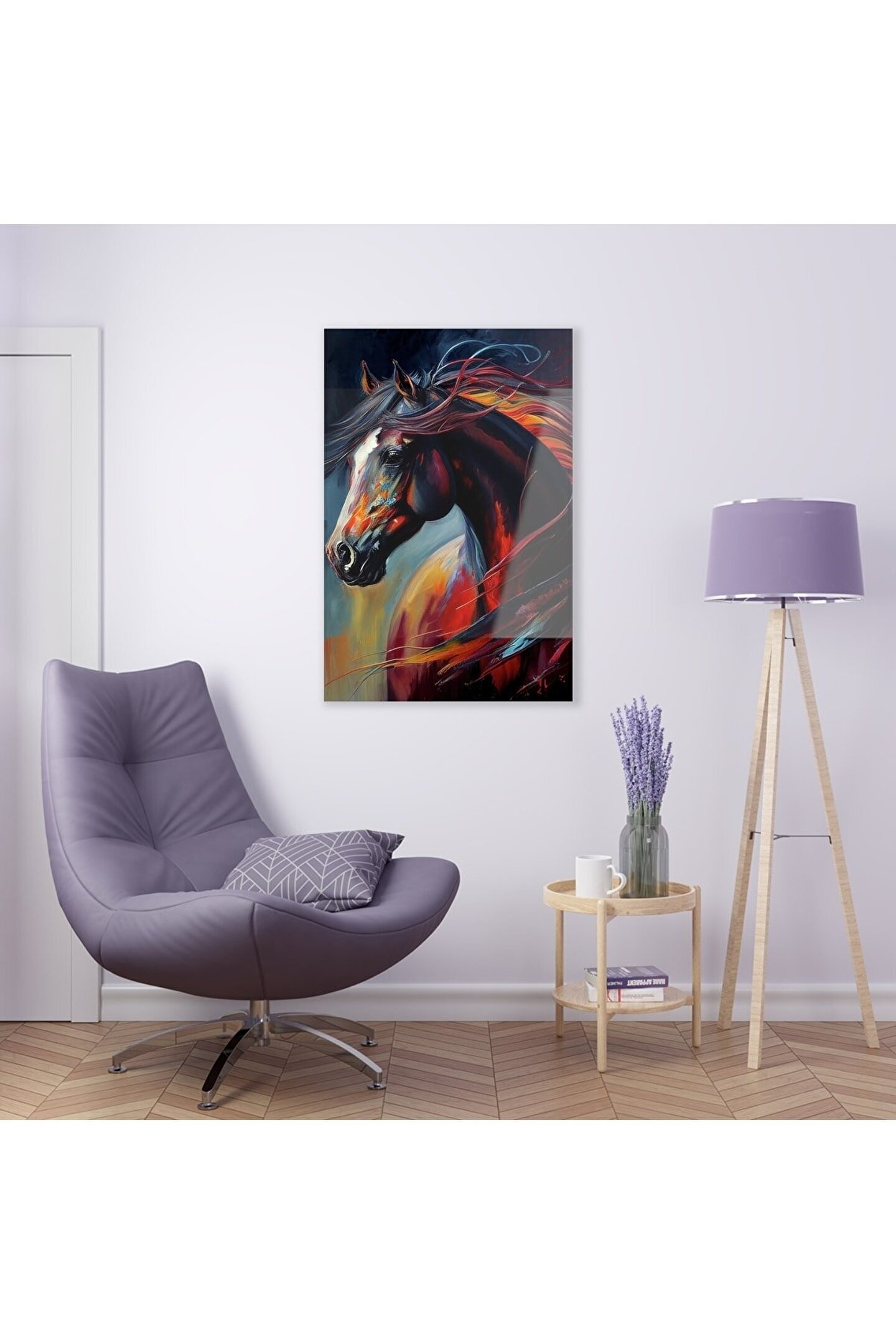 LEYLASER Suluboya Efektli At Cam Tablo Duvar Dekoru
