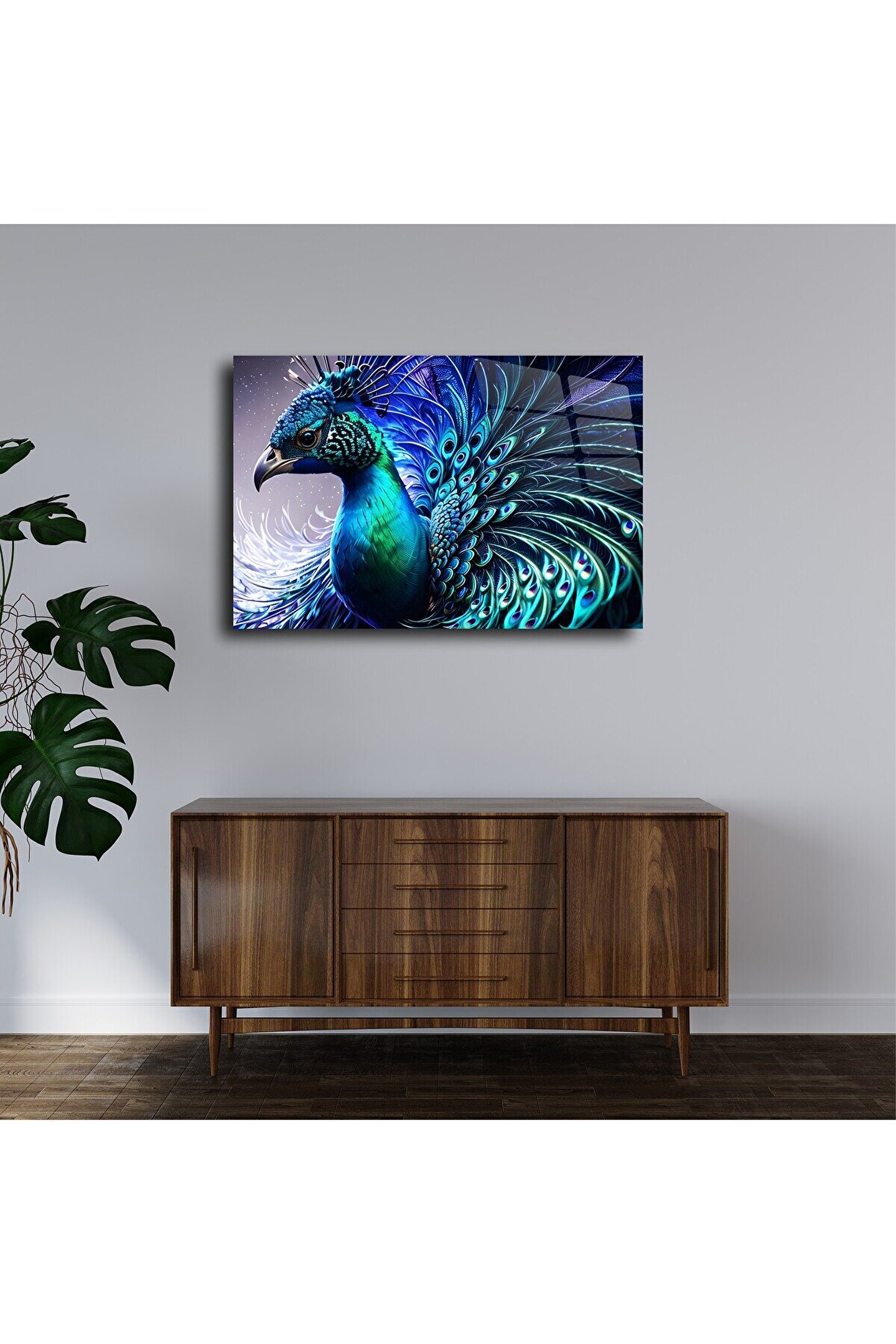 LEYLASER Tavus Kuşu Cam Tablo Duvar Dekoru 1