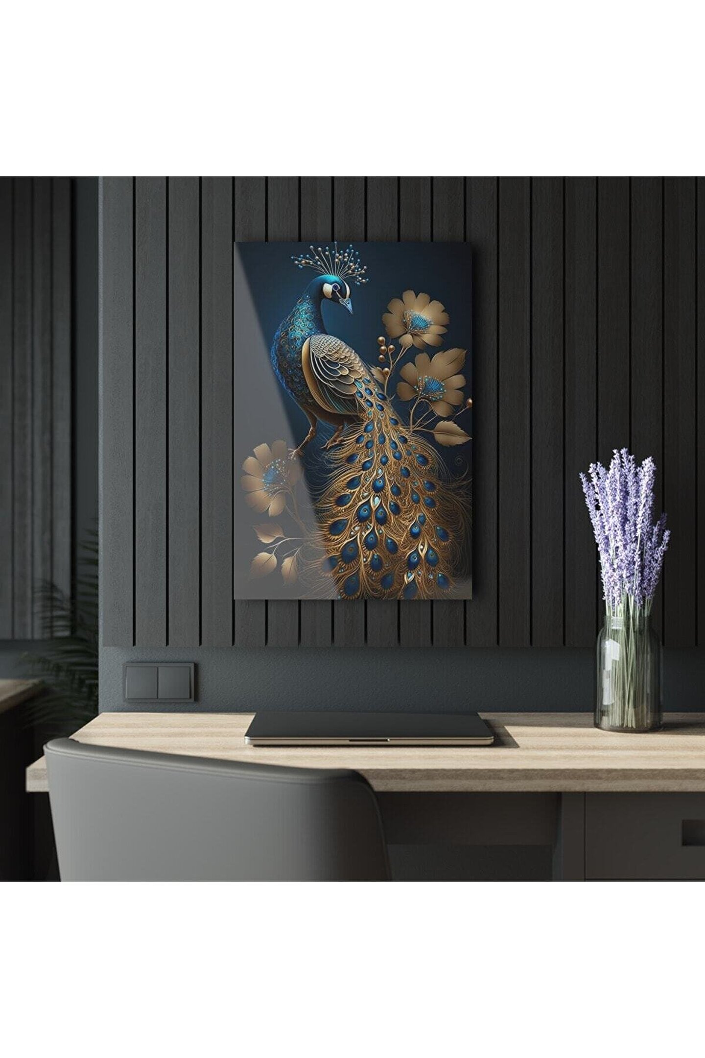 LEYLASER Tavus Kuşu Cam Tablo Duvar Dekoru 2