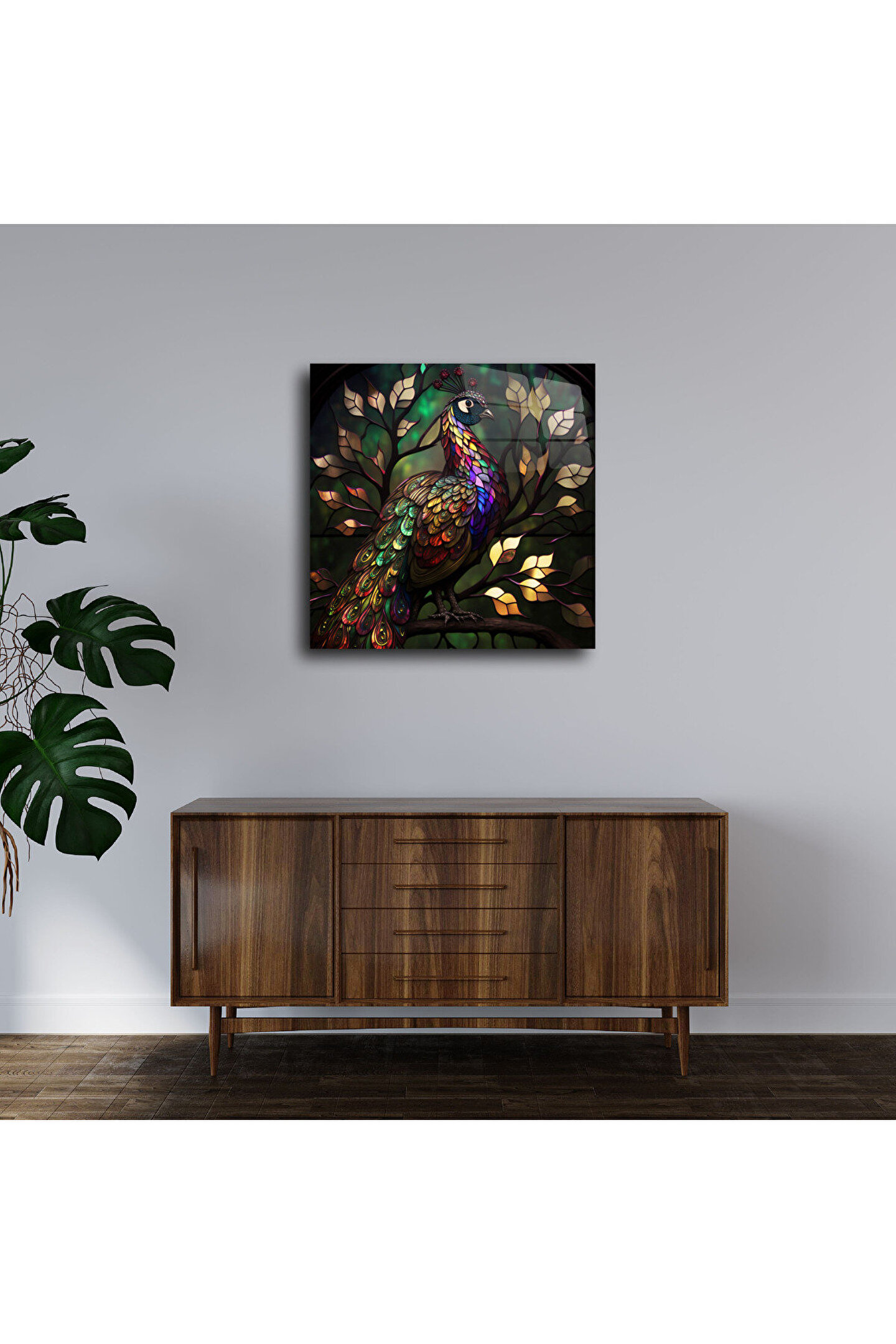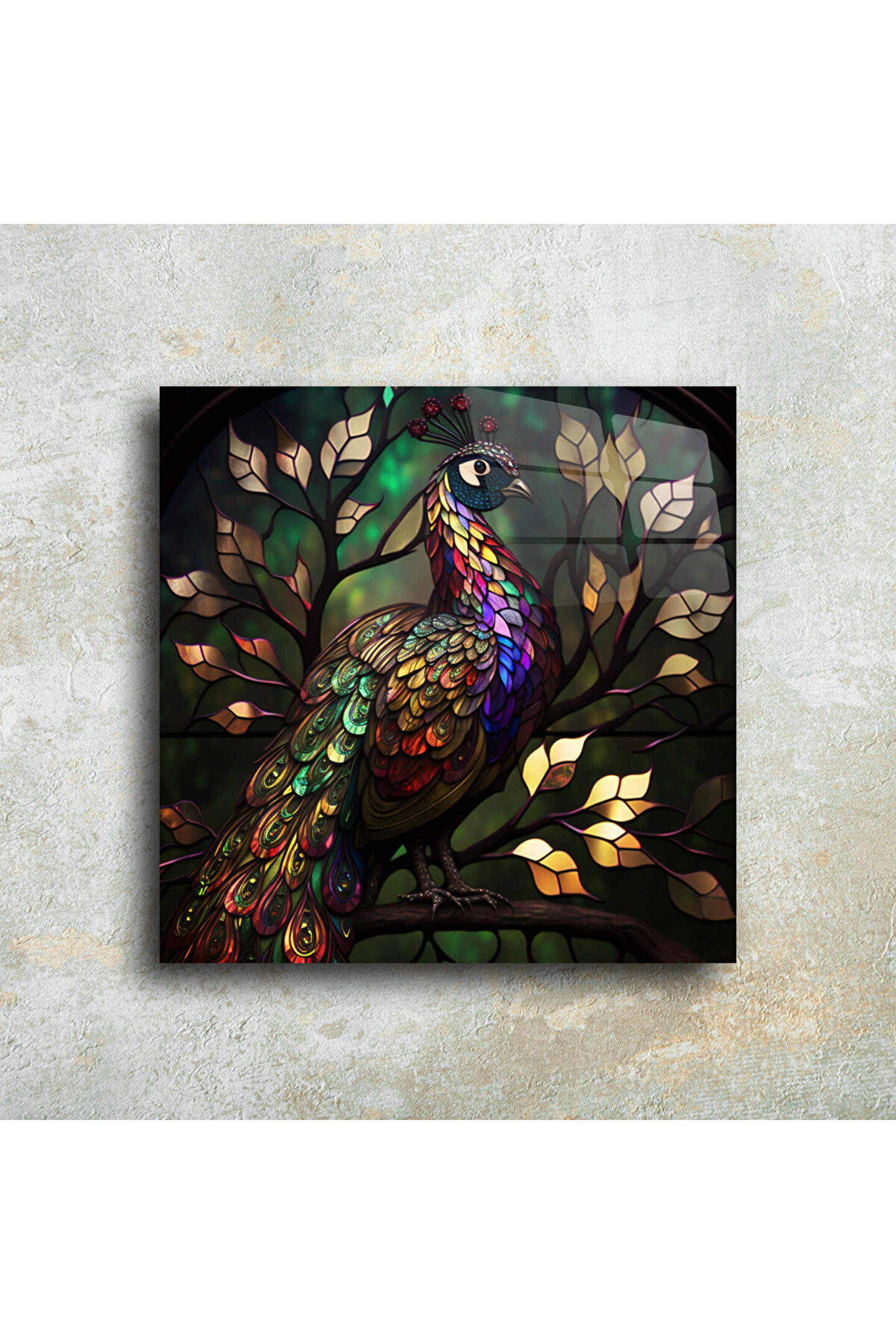 LEYLASER Tavus Kuşu Cam Tablo Duvar Dekoru 3