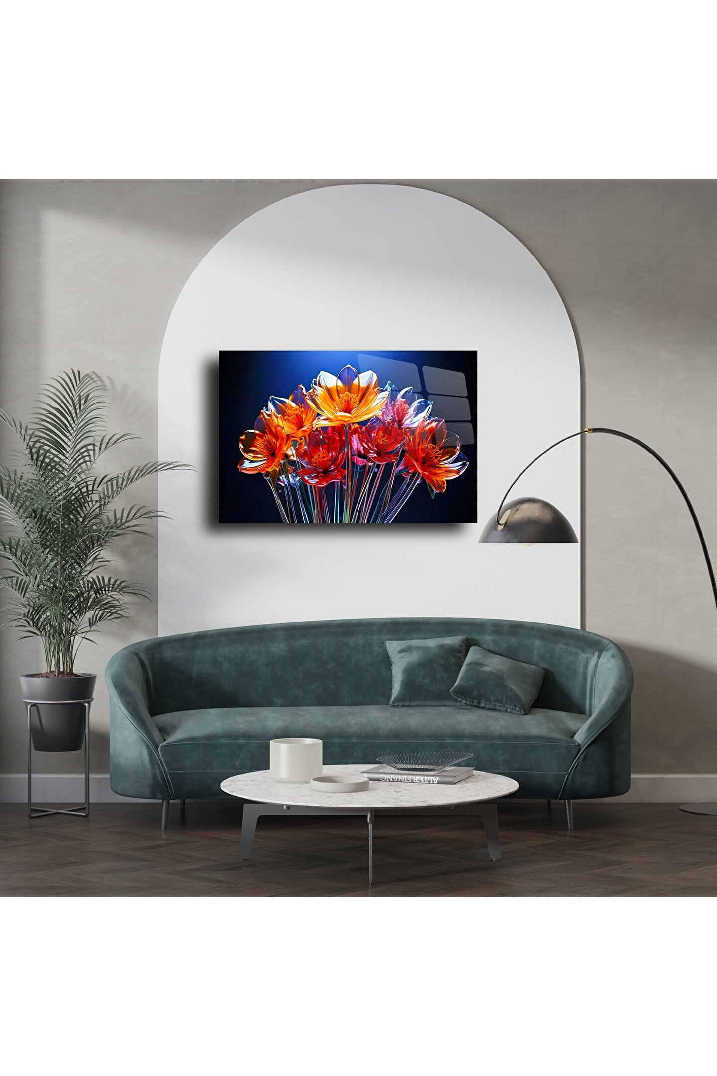 Salon, yatak odası veya özel bir köşe için güçlü bir estetik sunar. Renklerin kontrastı ve ışığın yansıması ile odanıza dinamizm katar.