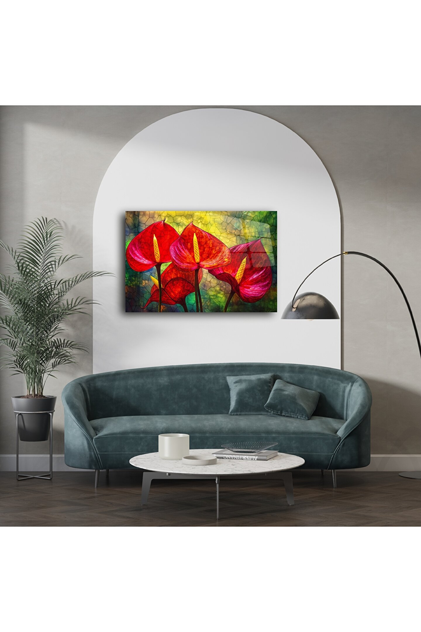 LEYLASER Vitray Görünümlü Kırmızı Antoryum Duvar Sanatı