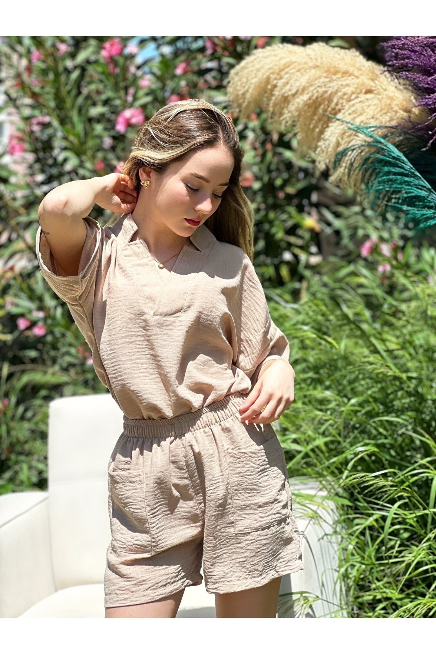 Rahat ve şık bir görünüm için ideal, günlük kullanıma uygun keten t; shirt; şort eşofman takımı; Regular boy kesimi ile her vücut tipine uyum sağlar ve konforlu bir kullanım sunar; İnce yapısıyla hafif ve nefes alabilen kumaşı, sıcak yaz günlerinde serinlik hissi verir; Truvakar kol tasarımı modern ve trend bir görünüm kazandırırken, yarasa kol kesimi hareket özgürlüğü sağlar; Oversize kalıbı sayesinde rahat bir oturuş sunar ve geniş paça tasarımı modern bir siluet oluşturur; Düz deseniyle sade ve zamansız bir stil yaratırken, v yaka detayı ile şıklığı tamamlar; Dokuma kumaş tipi dayanıklılığı arttırarak uzun süreli kullanım imkanı tanır; Beli lastikli yapısı sayesinde kolayca giyilip çıkartılabilir ve mükemmel uyumu garanti eder; Çift cepli tasarım pratiklik kazandırarak küçük eşyalarınız için ekstra alan sunar; Basic koleksiyonun parçası olarak her gardıropta temel;