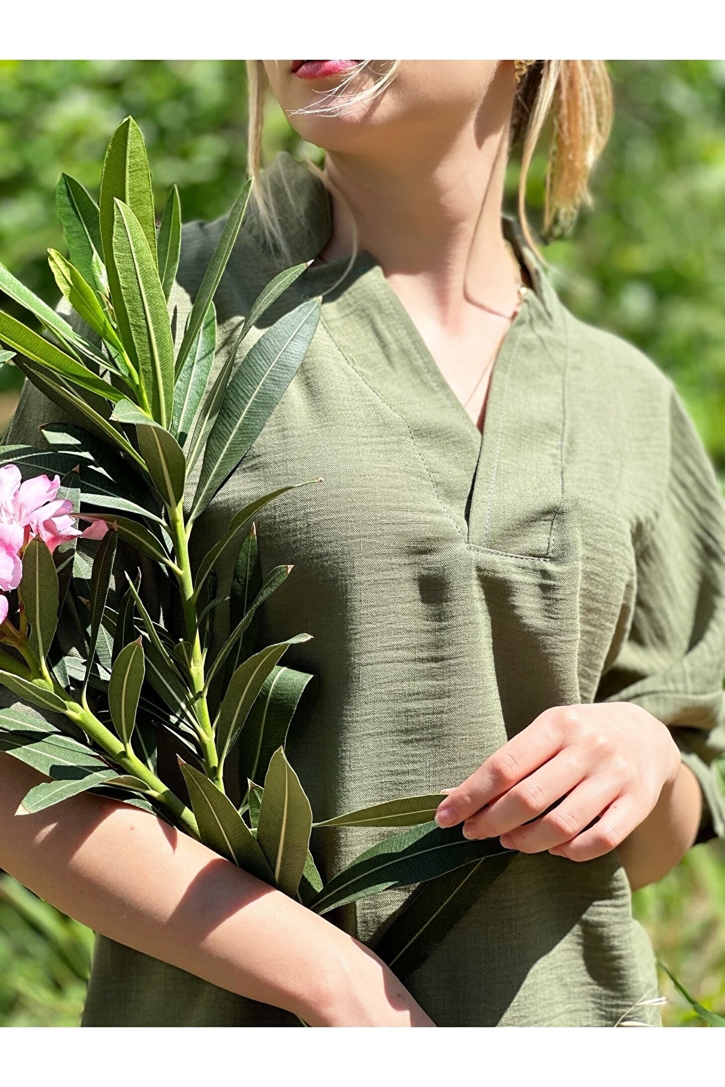 Truvakar kol tasarımı ile modern ve şık bir görünüm sunar; Günlük kullanıma uygun rahatlığı ve konforu bir arada sunan casual tarzda tasarlanmıştır; Dokuma kumaş yapısı sayesinde dayanıklılık ve nefes alabilirlik sağlar; V yaka kesimi ile sade ve zarif bir stil oluşturur; Çift cepli tasarımı pratik kullanım imkanı sunarken, eşyalarınız için güvenli bir alan sağlar; Lastikli bel detayı sayesinde rahat bir oturuş ve hareket özgürlüğü sağlar; Basic koleksiyonun sadeliğiyle her ortama uyum sağlayacak şekilde tasarlanmıştır; Geniş paça kesimiyle modern ve trend bir siluet çizer; Beli lastikli yapısı konforlu bir kullanım sunarken, vücut hatlarını nazikçe sarar; Oversize kalıbı rahatlığı ön planda tutarak geniş ve rahat bir kullanım imkanı tanır; Basic siluetiyle zamansız bir şıklık yaratır; her mevsim tercih edilebilir; Keten materyali hafifliği ve doğal dokusuyla;