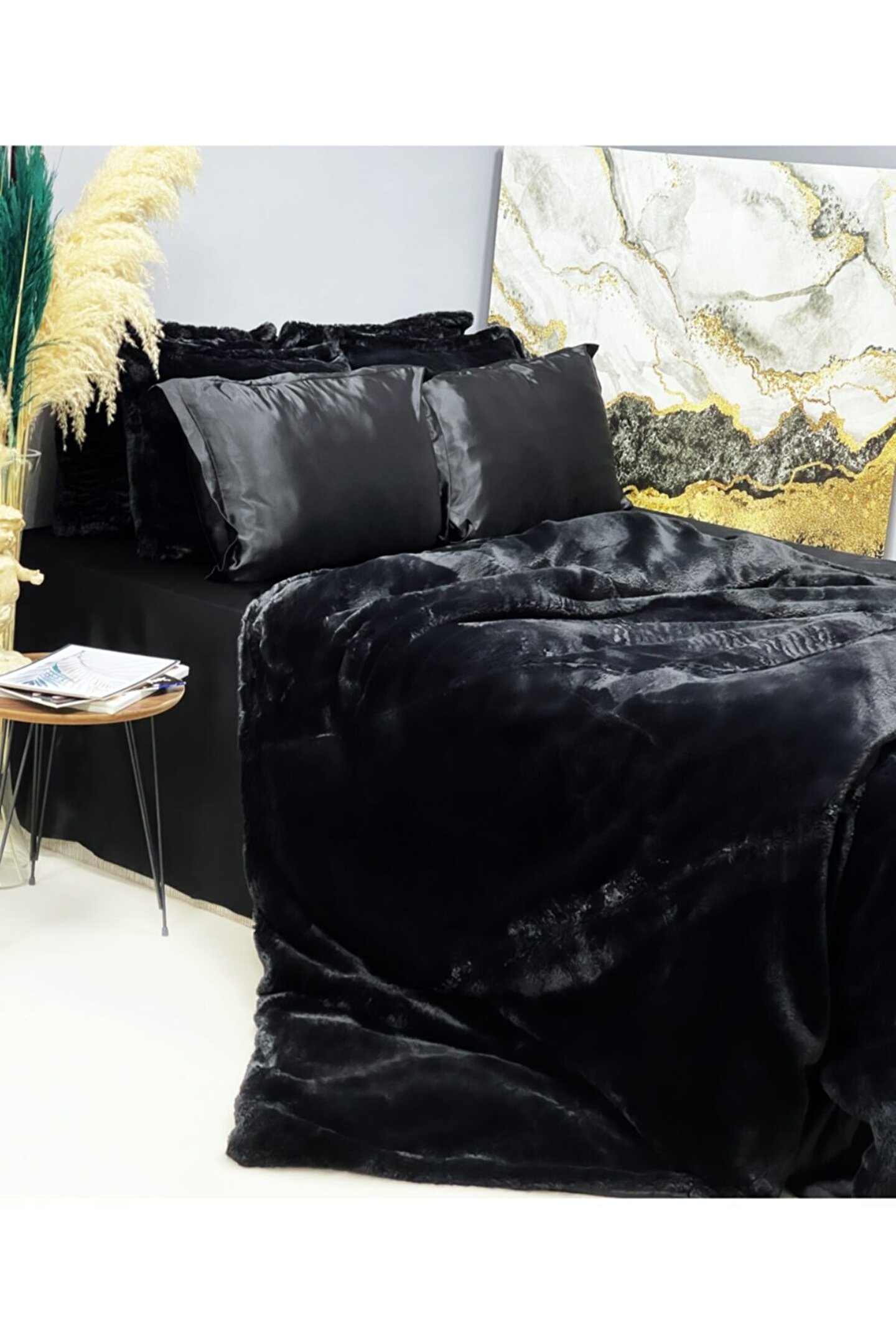 siyah suni tavşan tüyü nevresim takımı 2 kişiliktir Yorgan kılıfı Dış kumaş yüksek kaliteli kopmaz suni tavşan tüyü Yorgan kılıfı İç astarı pamuk satendir Çarşaf ipek satendir Ürün içeriği 2 adet suni tavşan tüyü yastık kılıfı 50x70 cm 2 adet ipek saten yastık kılıfı 50x70 cm 1 adet ipek saten çarşaf 240x260 cm 1 adet yorgan kılıfı 220x240 cm Yastıkların İç dolgusu mevcut değildir Yorgan kılıfı çift kat astarlıdır Kumaş suni kürktür kopma yapmaz Kılıflar Yüksek kaliteli fermuarı sayesinde kolay kullanım sağlar 30 derece hassas yıkama önerilmektedir