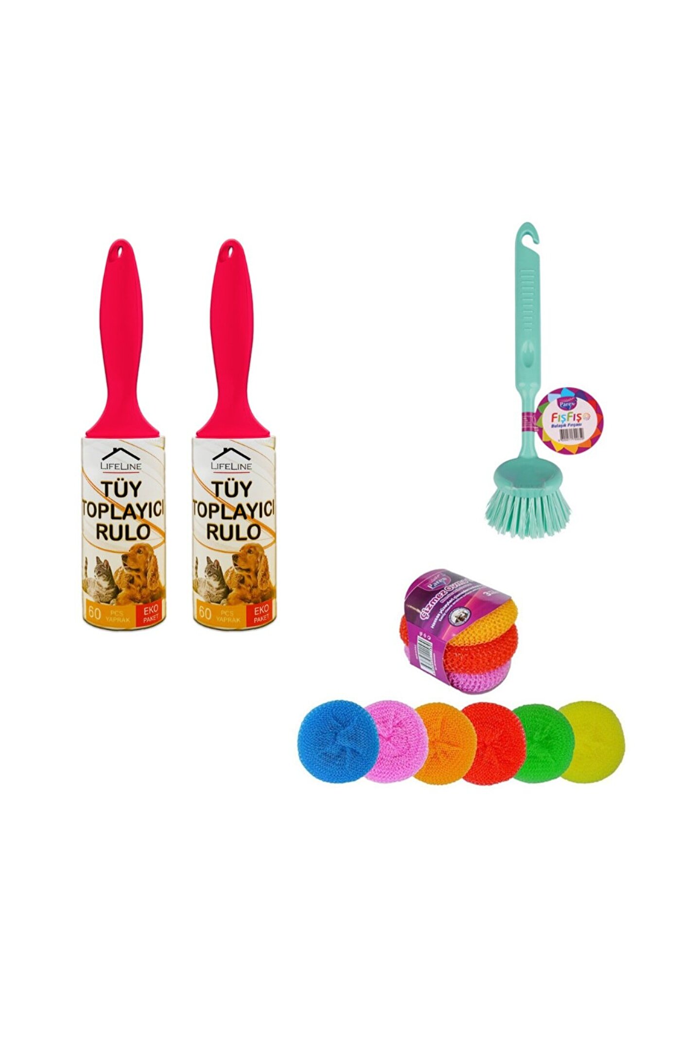 Temizlik Seti 2 Tüy Toplayıcı Rulo Parex Fışfış Bulaşık Fırçası Parex Çizmez Ovma Teli Set