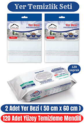 Life Line Yer Temizlik Seti 2 Adet Yer Bezi 50 Cm X 60 Cm 120 Adet Yüzey Temizlik Havlusu Beyaz Sabun