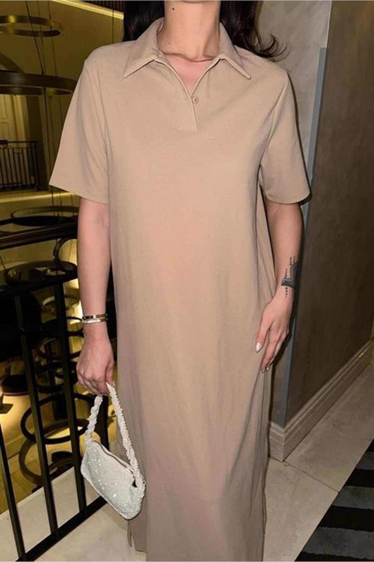 Manque Polo Yaka Yırtmaçlı Elbise 2689-8