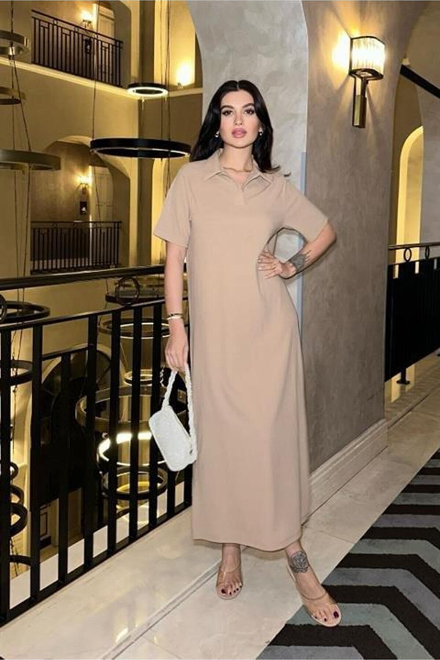 Lijuri Manque Polo Yaka Yırtmaçlı Elbise 2689-8