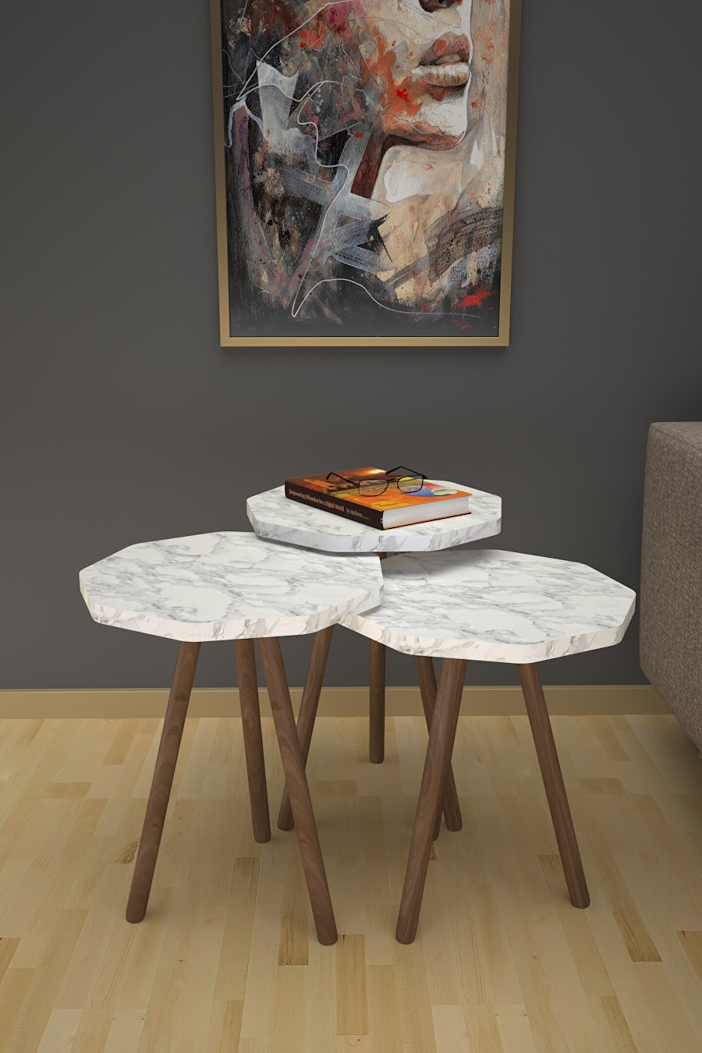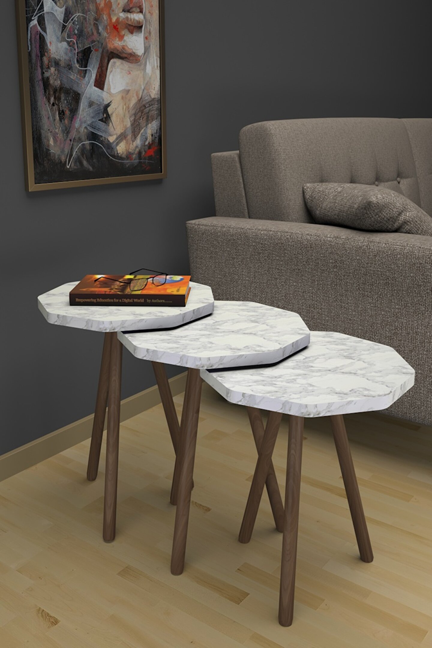 Üçlü Özel Tasarım 3'lü Limnizza Zigon Sehpa Üst Tabla Çap: 34cm Yükseklik: 49cm Orta Tabla Çap: 34cm Yükseklik: 45cm Alt Tabla Çap: 34cm Yükseklik: 41cm Ürünlerimiz özel kutusunda demonte olarak gönderilmektedir. ; Ürün ayakları %100 doğal 1. ; Sınıf ahşap malzemeden özel olarak üretilmiştir. ; Ayaklar da insan sağlığına dost ahşap koruyucu su bazlı özel cila kullanılmıştır. ; Üst tablası 18 mm kalınlığında, 1. ; sınıf yonga levha (suntalam) kullanılarak üretilmiştir. ; TSE, Avrupa Birliği EN, ISO 9001 belgelerine sahiptir. ; E1 Standartları dahilinde kanserojen madde içermez. ; Kenarları 1.sınıf 0,40mm PVC bant ile kaplıdır. ; Ayak için kullanılan ağacın doğal yapısından kaynaklanan renk tonu ve desen farklılıkları olabilmektedir. ; Montaj malzemeleri için gerekli olan aksesuar poşeti ürünle birlikte kutusunda gönderilmektedir. ; Ayakları tutacak olan aparat, somunlu plastik olup, tablaya vida ile kullanıcı tarafından monte edilecektir. ; Sehpanın ayaklarını elinizle çevirerek yerine kolaylıkla monte edebilirsiniz.;
