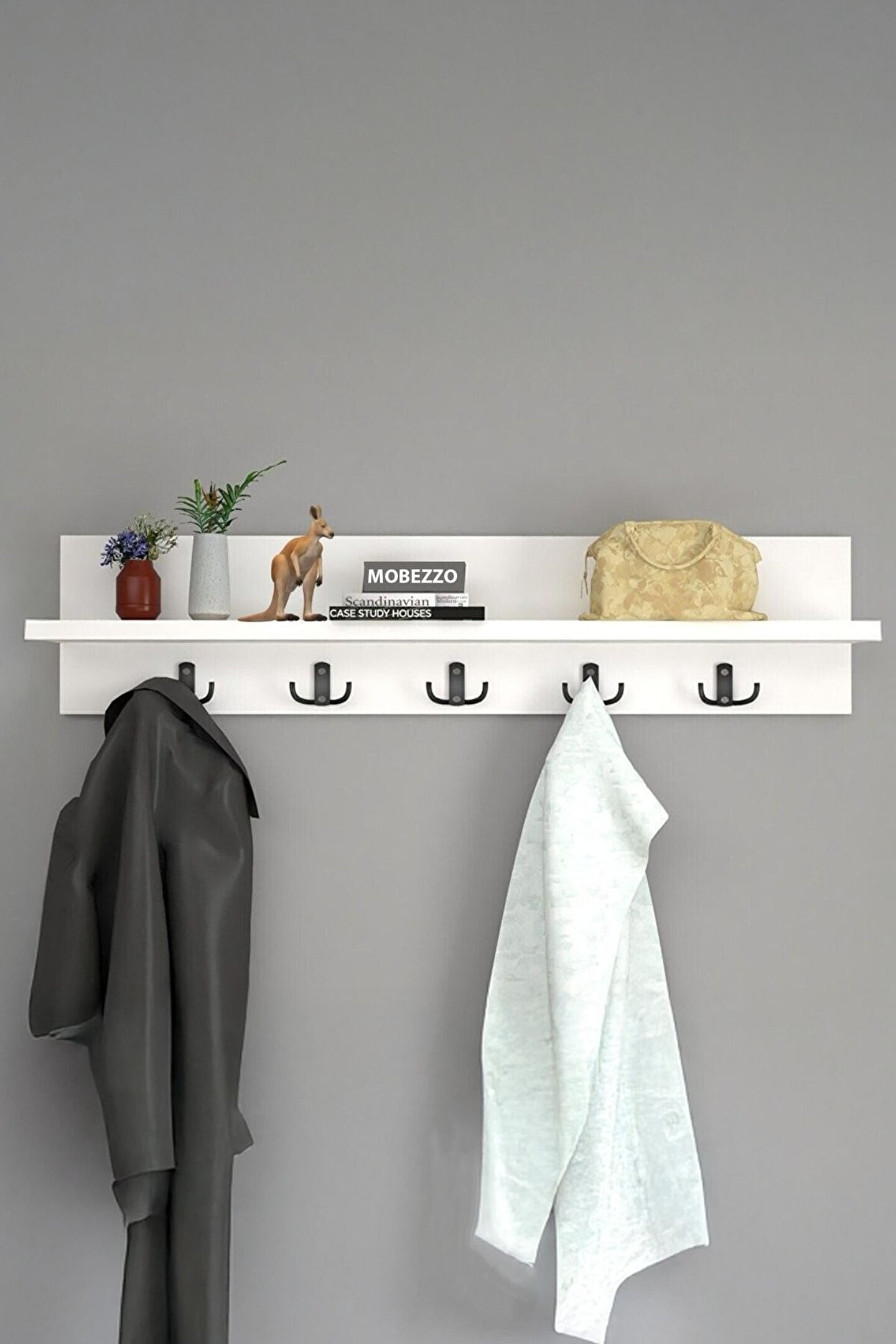Ahşap Raflı Portmanto Duvar Askılığı Elbise Askılığı 70 Cm