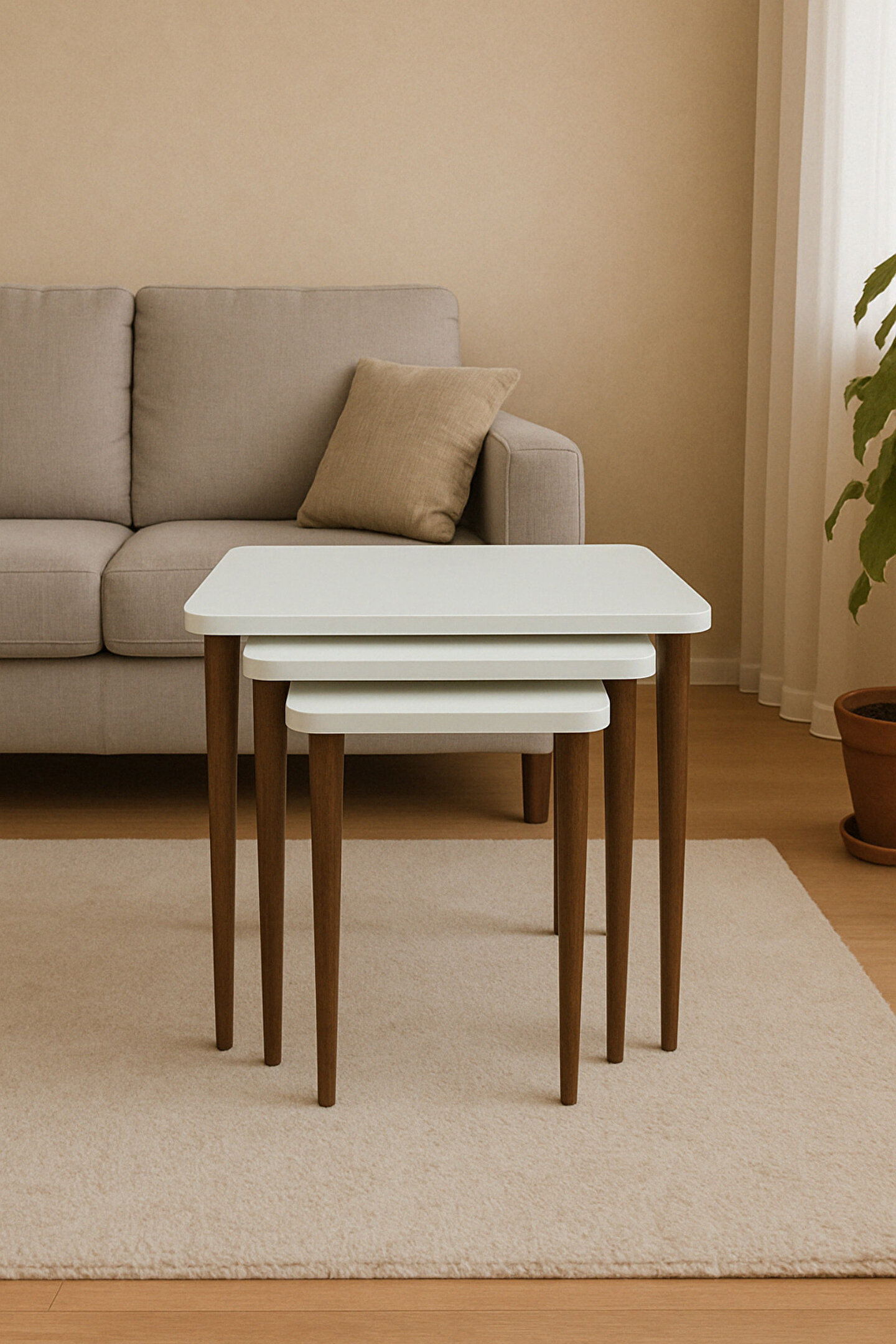 Ceviz renkli, ahşap ayaklı bu zarif zigon sehpa takımıyla evinizin şıklığını tamamlayın!