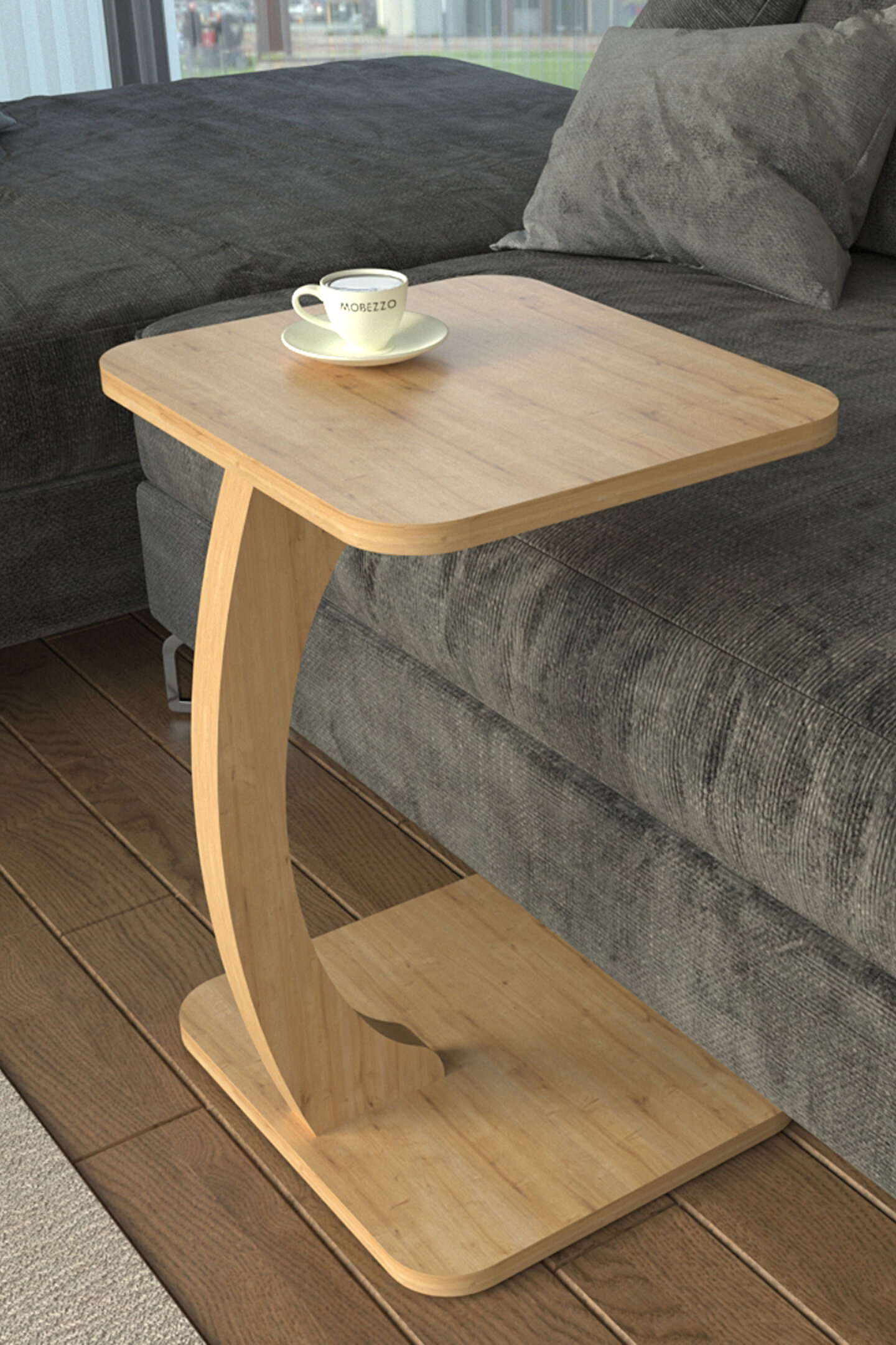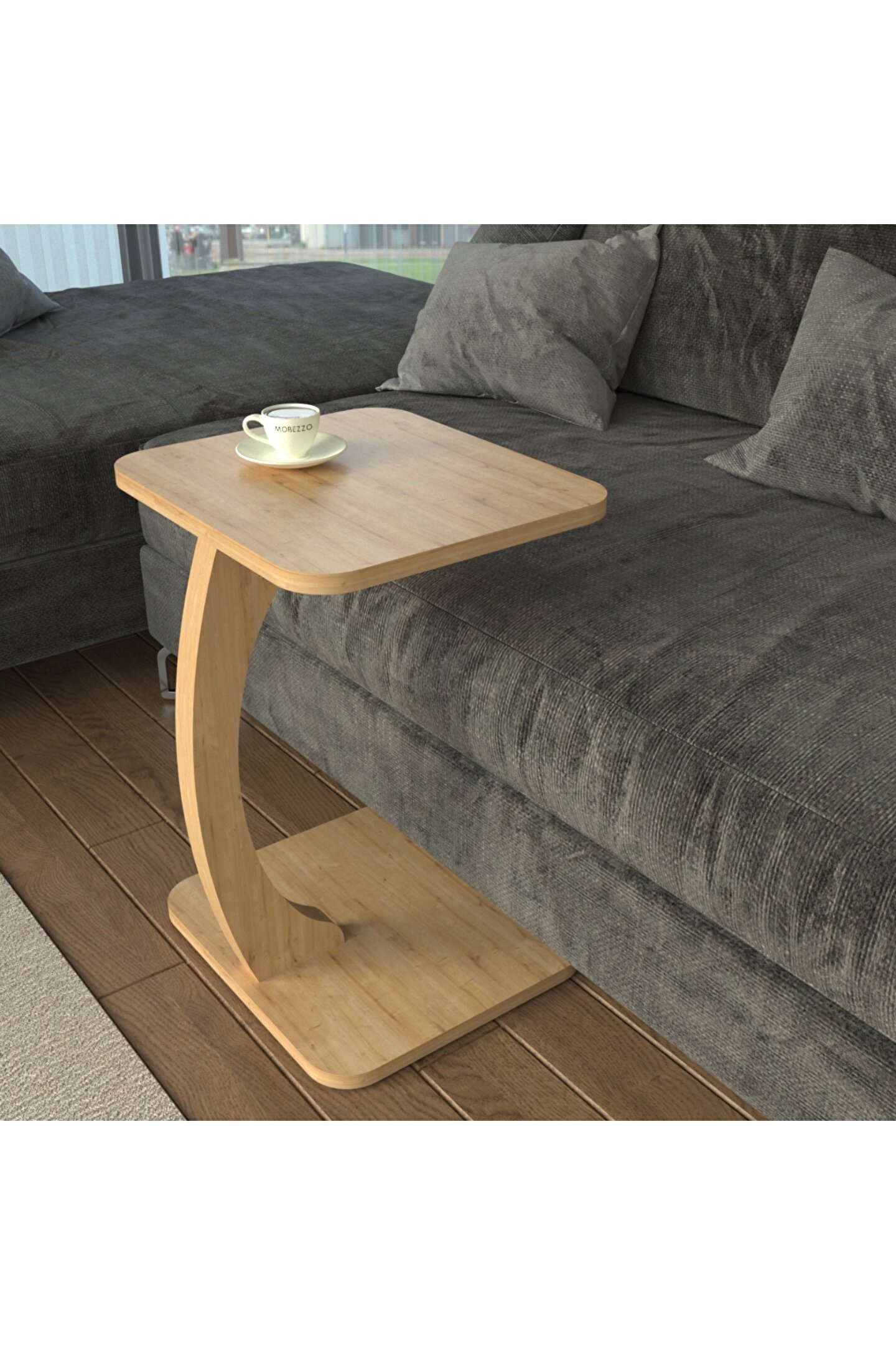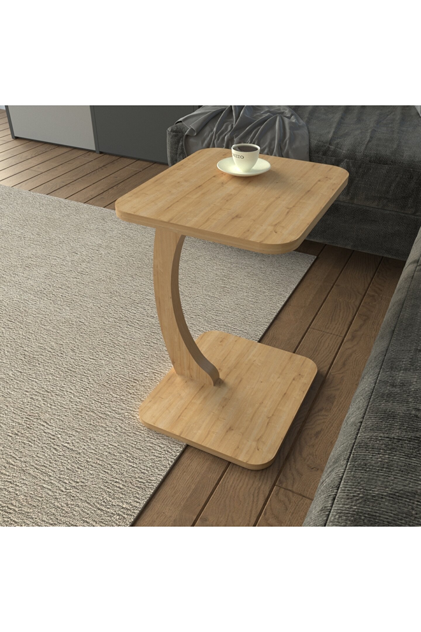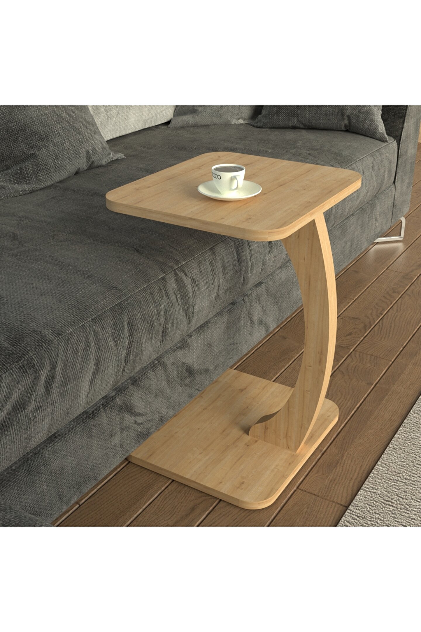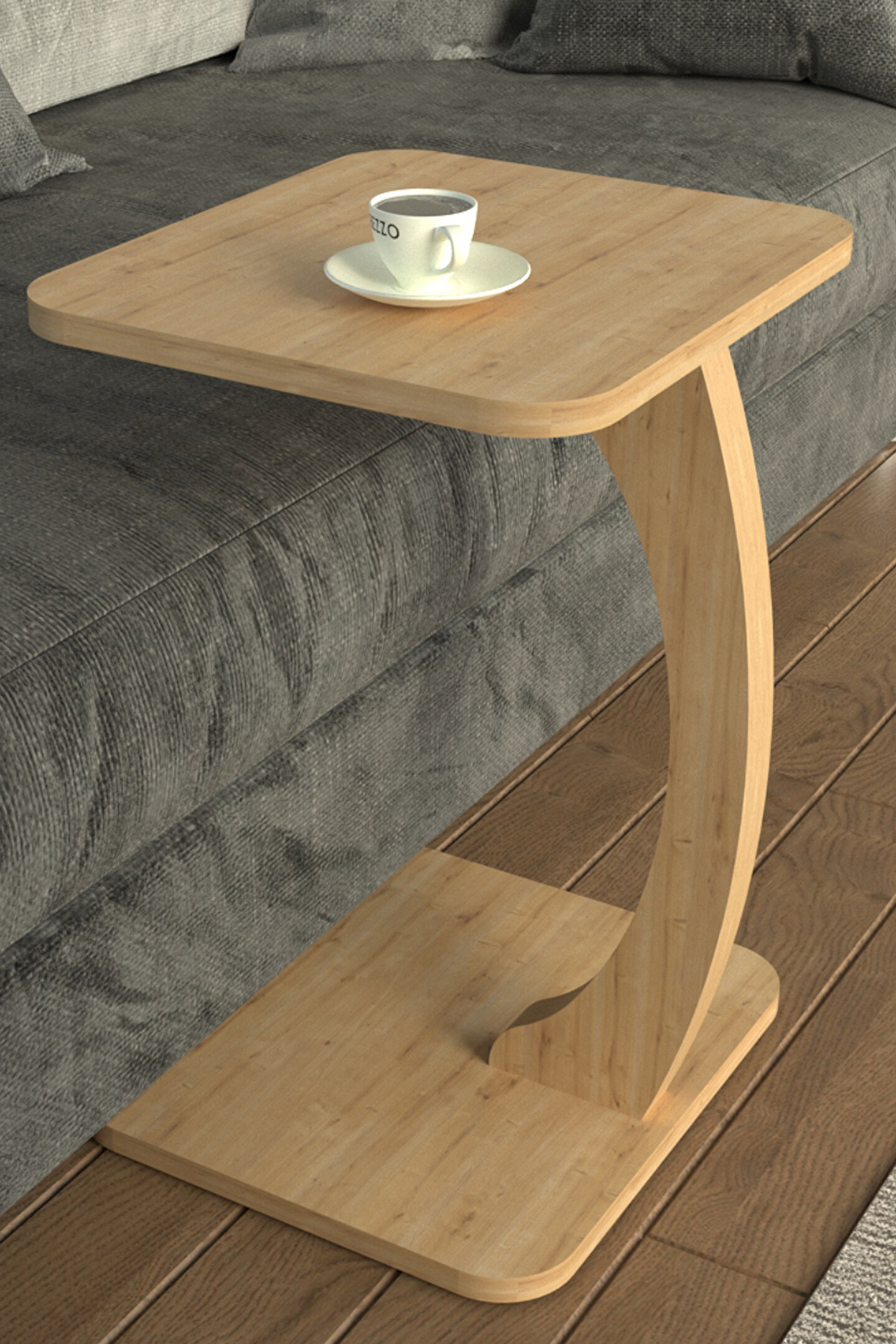 Limnizza C Ayaklı Modern YanSehpa Koltuk Yanı Laptop Kahve Kitap Sehpası Servis Sehpası Dikdörtgen SafirMeşe
