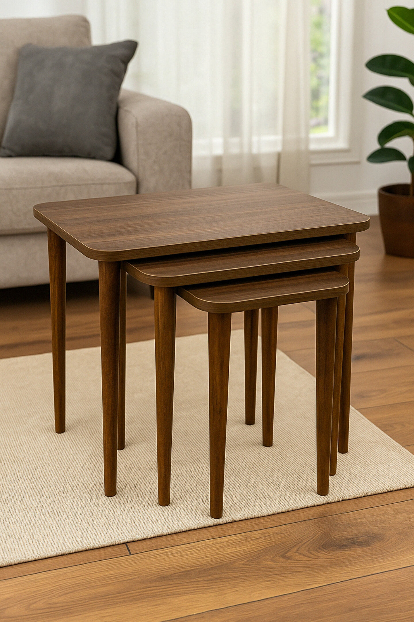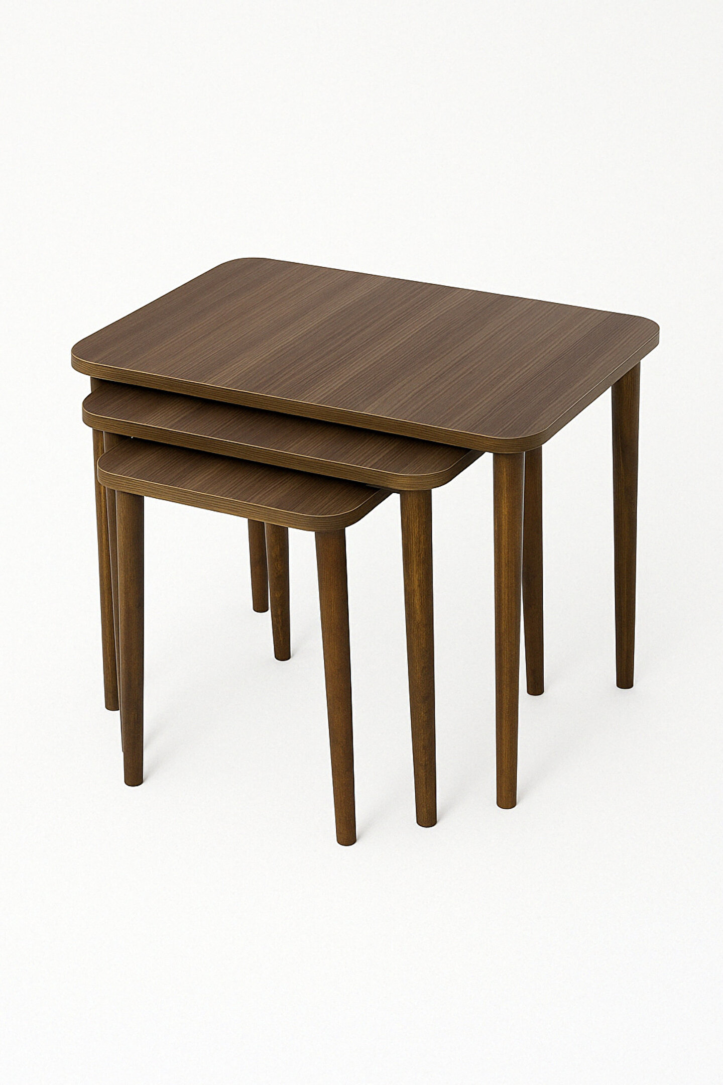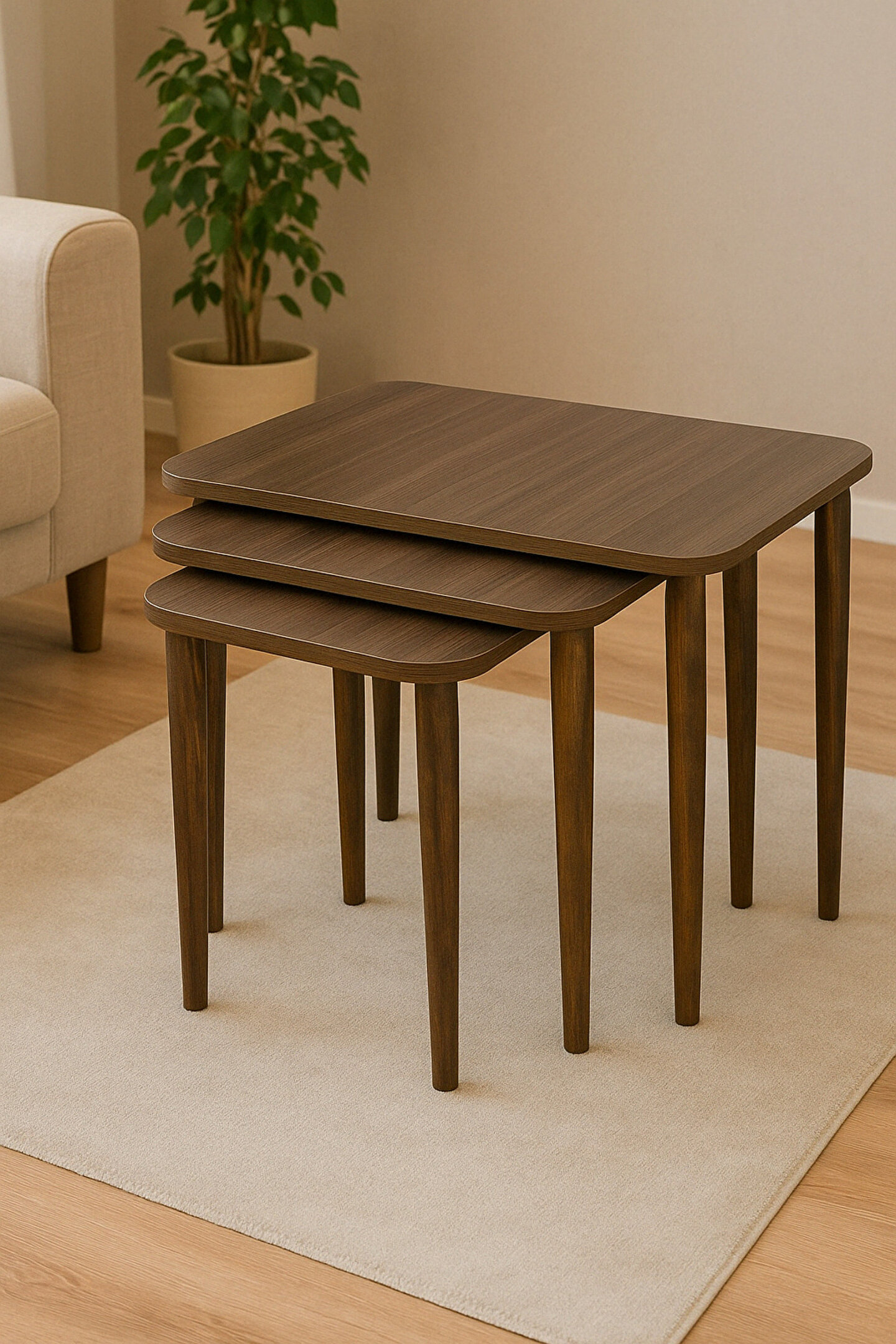 Limnizza Ceviz Renkli 3'lü Zigon Sehpa Takımı | Modern Ahşap Yan Sehpa | Dekoratif Katlanabilir Sehpa Seti