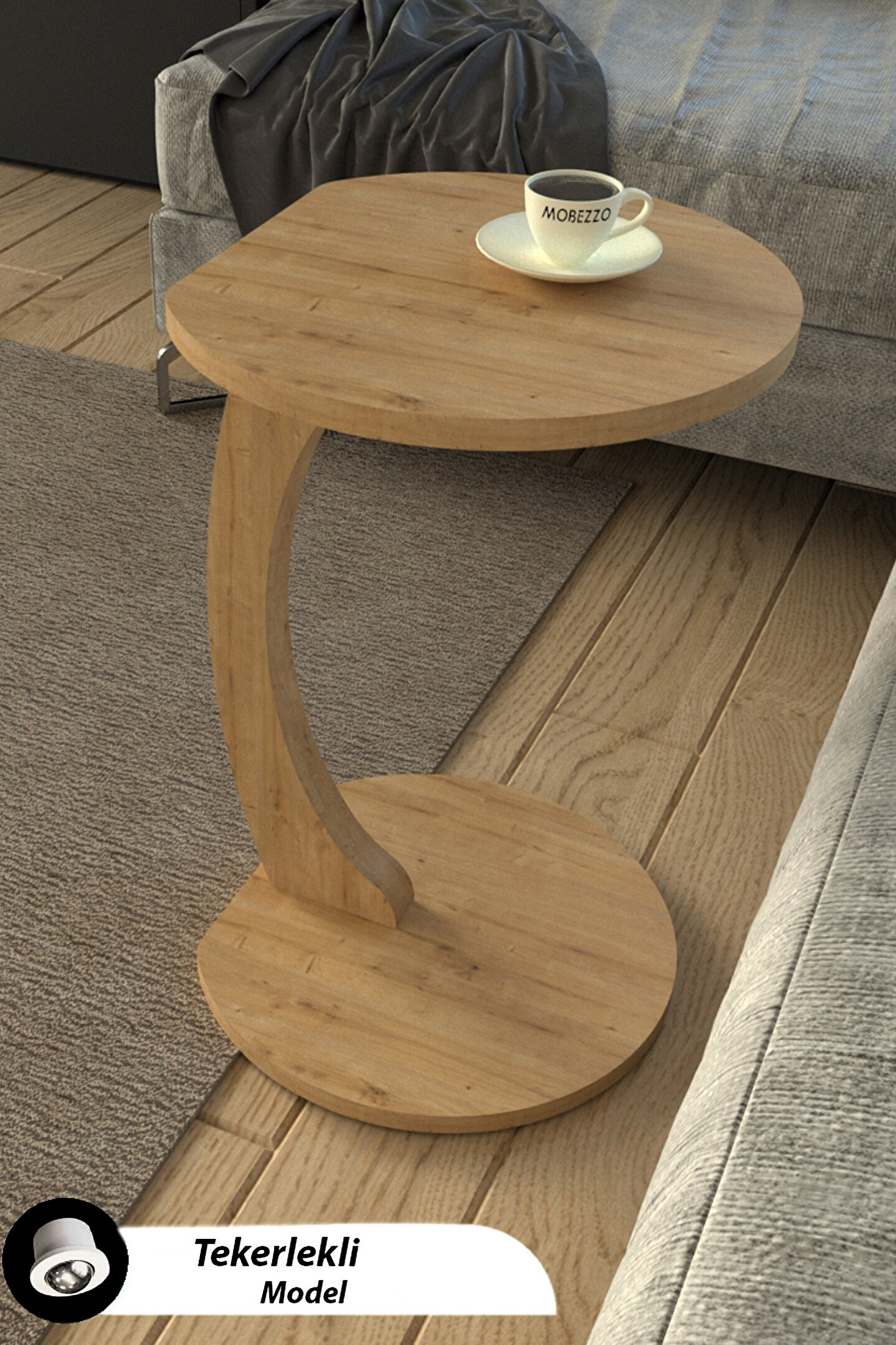 2. Kolay Taşınabilirlik:En büyük avantajlarından biri, altındaki tekerleklersayesinde ev içinde zahmetsizce hareket ettirilebilmesidir. Misafir ağırlarken ek bir servis sehpası olarak kullanmak, koltuğunuzun kenarına laptop masası olarak çekmek veya sadece odanın yerleşimini değiştirmek istediğinizde kolayca taşıyabilirsiniz. Tekerleklerdeki kilitleme mekanizmasısayesinde sehpayı istediğiniz yerde sabitleyebilirsiniz.