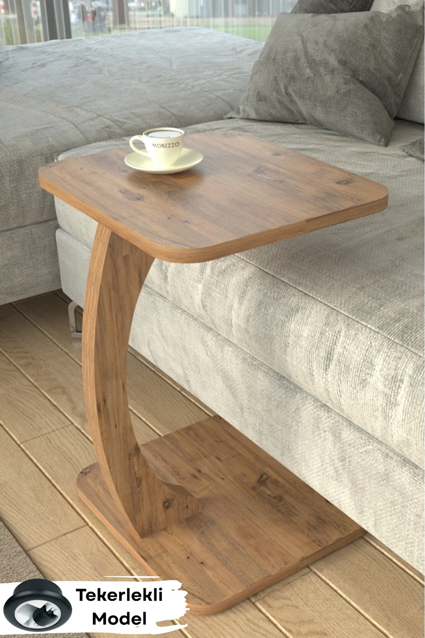 Tekerlekli Dikdörtgen C Sehpa Koltuk Yanı Laptop Masası Modern Zigon Yan Sehpa Salon Ofis Sehpası