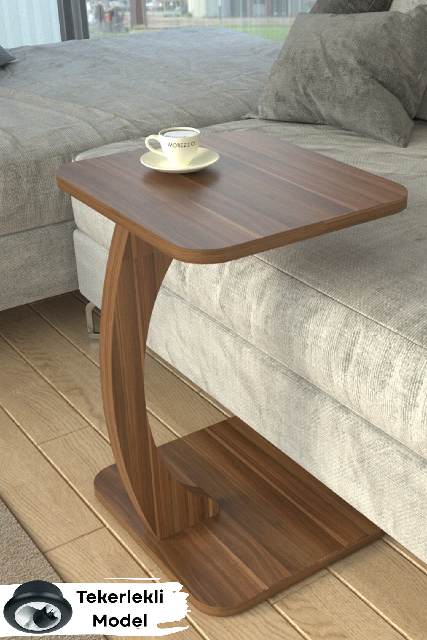 Tekerlekli Kare C Sehpa Koltuk Yanı Laptop Masası Modern Zigon Yan Sehpa Salon Ofis Sehpası