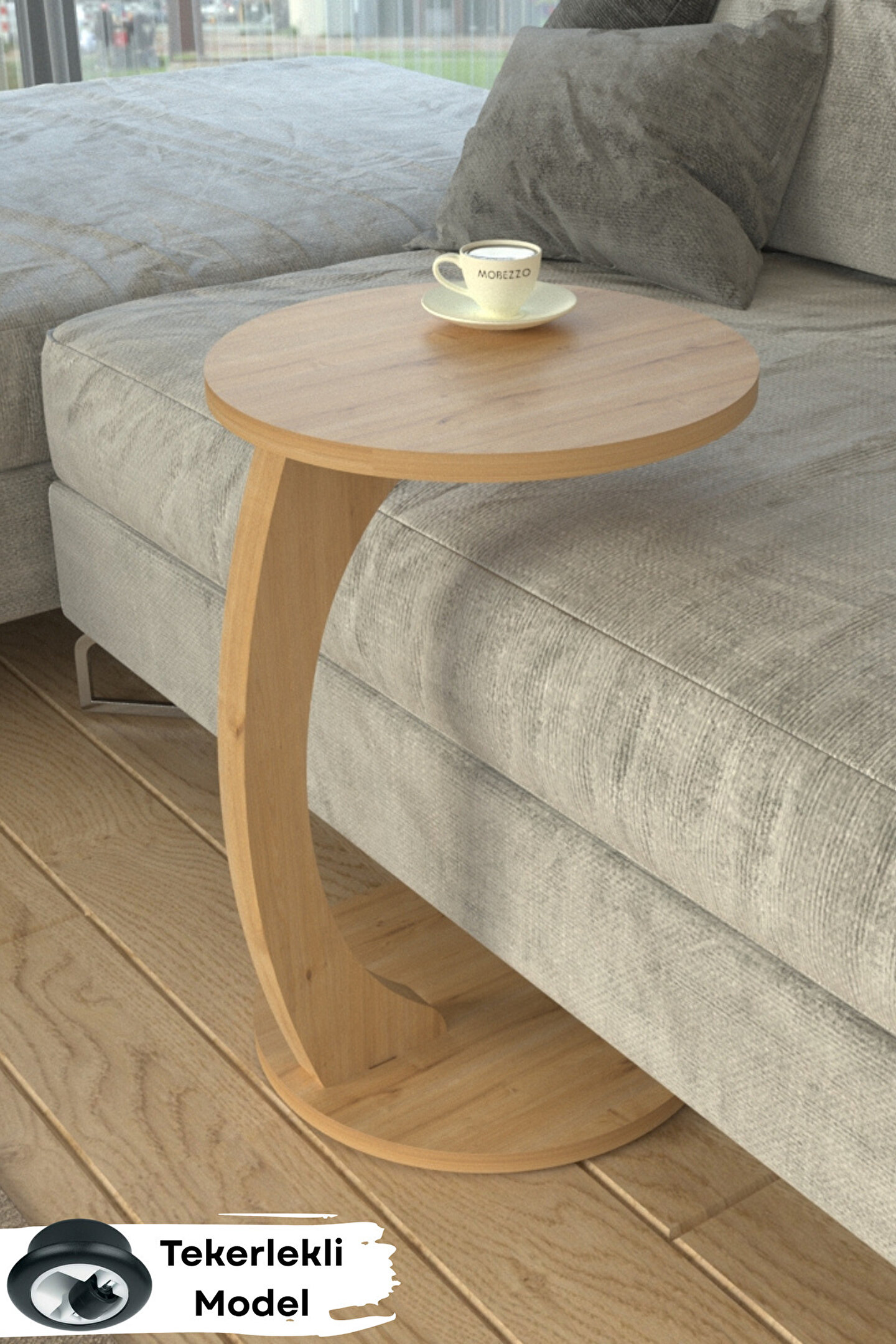 Tekerlekli Yuvarlak C Sehpa Koltuk Yanı Laptop Masası Modern Zigon Yan Sehpa Salon Ofis