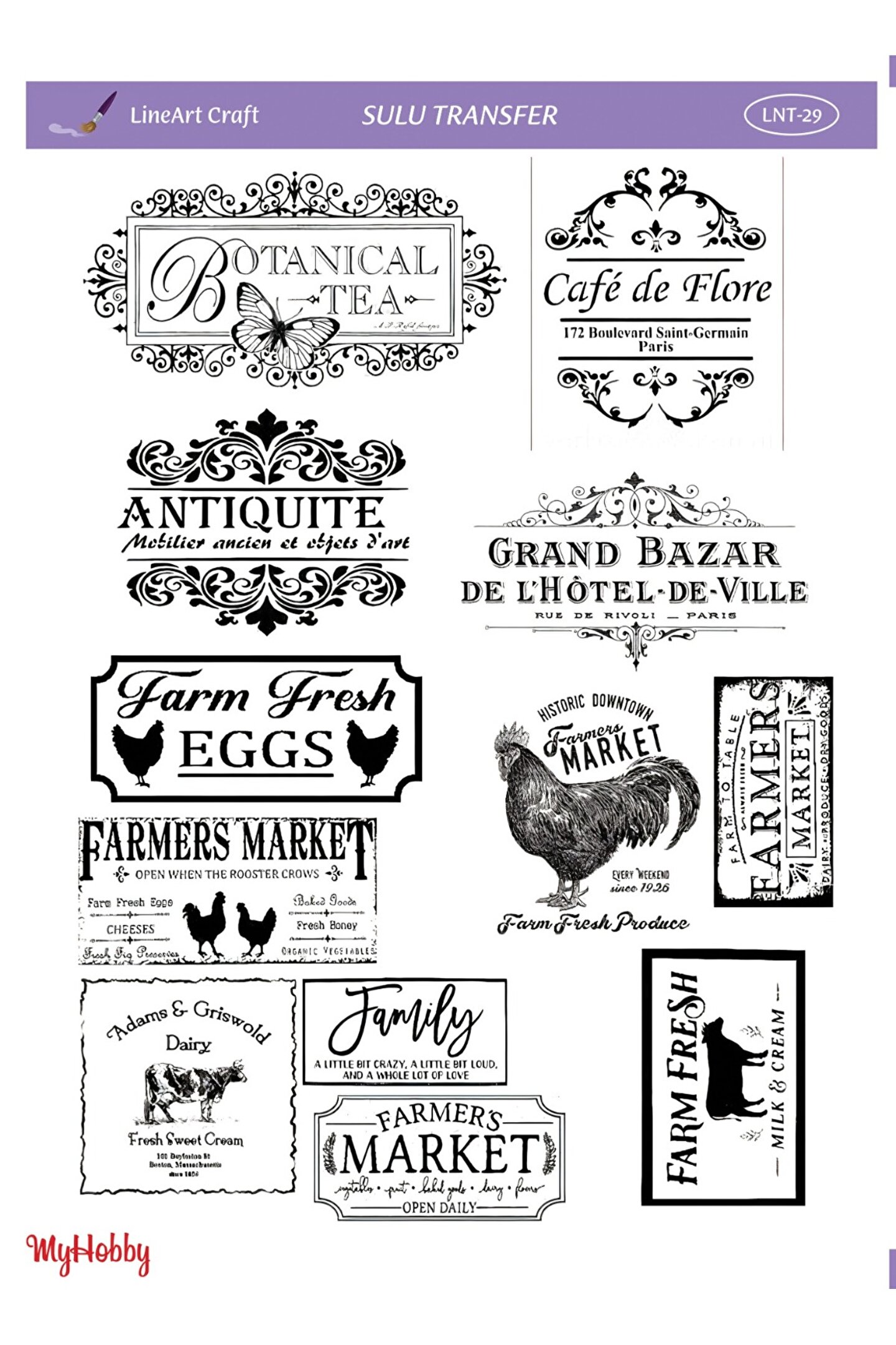 LİNEART LNT-29 Siyah Beyaz Kaligrafik Desenli Sulu Transfer 25*35 cm
