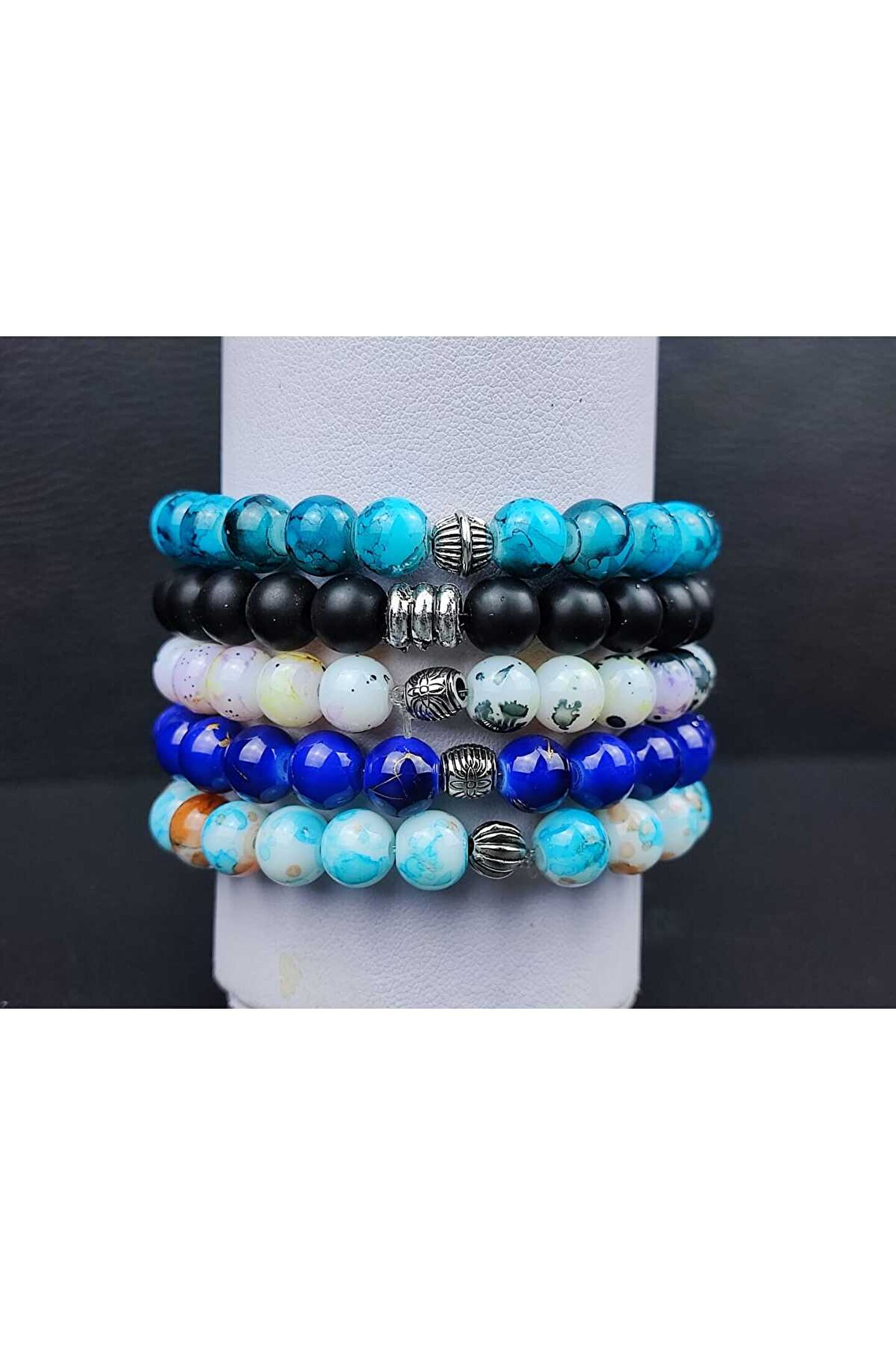 Lio20 5li Porselen Kaplama Doğal taş Bileklik Unisex Aksesuar Bijuteri Hediyelik bileklik