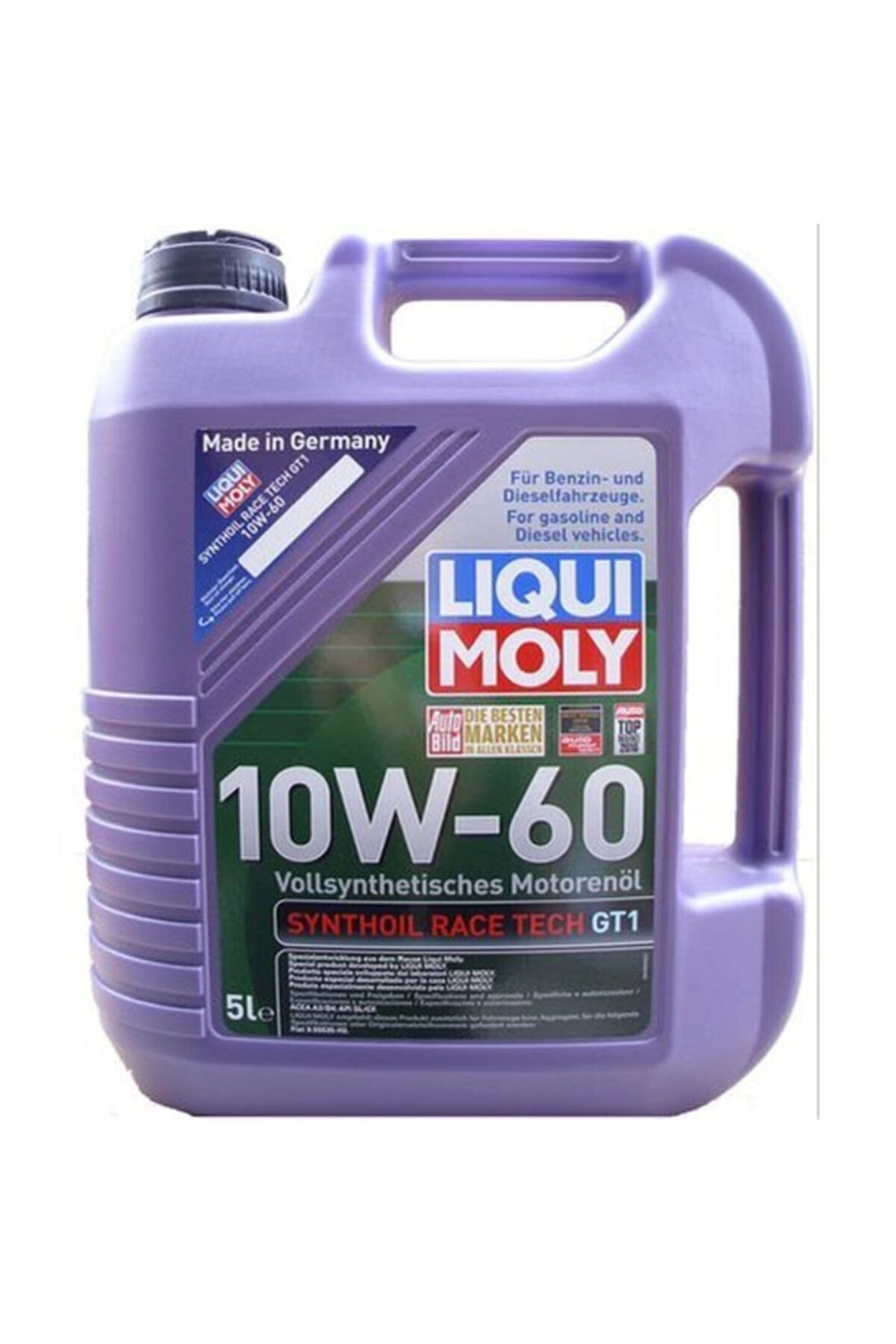 LIQUI MOLY 10W-60 SYNTHOİL RACE TECH GT1 MOTOR YAĞI 5 LİTRE ÜRÜN TARİHİ:11/2020 Motor sporuna özel olarak geliştirilmiştir.; Yıl boyunca spor kullanılan benzinli ve dizel motorlar için uygundur.; Katalitik konvertör ve turbo uyumlu.; Sportif sürücü ve aşırı kullanım koşulları için Aşırı kullanım koşulları için tam sentetik düşük viskoziteli motor yağı. Klasik motor sporu viskozitesi sayesinde yüksek yağlama emniyeti, optimum yağ basıncı ve maksimum aşınma koruması. Maksimum motor gücüyle ve yüksek performansla hedefe daha hızlı ve güvenle gelin.
