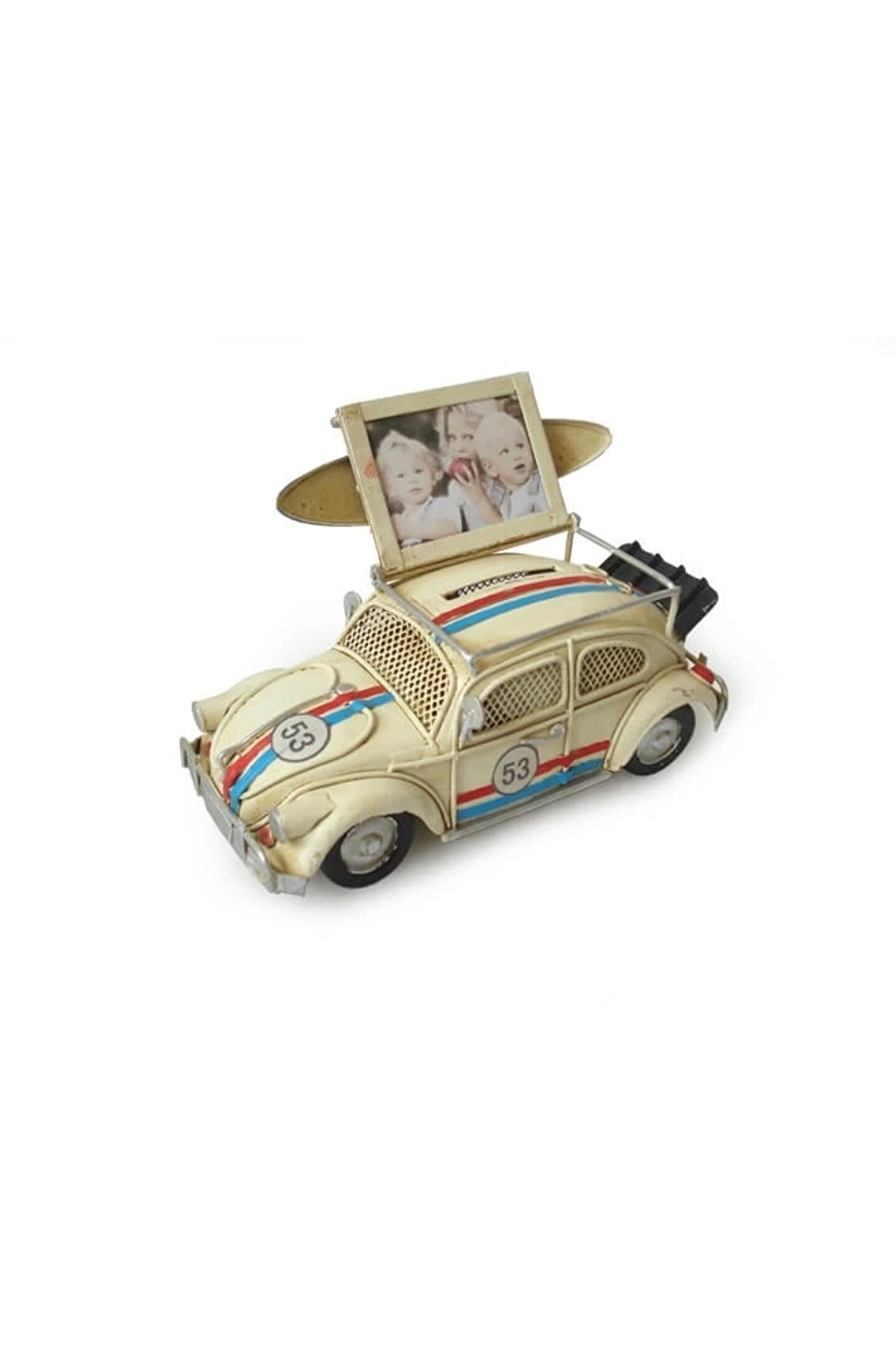 Ürün Özellikleri Volkswagen Beetle Classic Vosvos modelidir.; Vintage tarz olup, eskitme yapılmıştır.; Tamamı metal malzemeden üretilmiştir.; El yapımı ve el boyamasıdır.; Kumbara ve çerçeve özelliği mevcuttur.; Dekoratif amaçla kullanılır.Oyuncak değildir.; Ürün Ebatları Uzunluk : 15 cm ; Genişlik : 6,5 cm ; Yükseklik: 6,5 cm ; . Ürün Markası: Lisinya