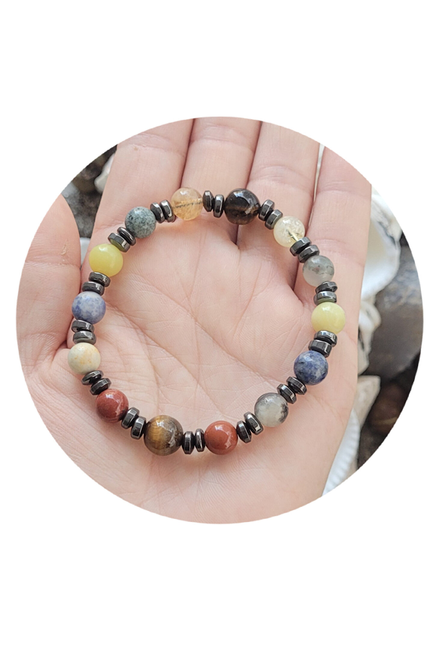 ??Doğal taşlar içerdiği mineraller sayesinde ve kendilerine has titreşimleri ile insan vücudunda olumlu etkilere sahiptirler. ??Taşlar bünyesinde bulundurduğu mineraller yardımı ile bedenimizde mineral bakımından eksiklikler var ise bunları tamamlamaya yardımcı olur. ??Vücudumuza yaydığı enerji ile çakraları dengelemeyi sağlarken ruh sağlığımızı korur, negatif enerjileri emip pozitif enerji yayar.??Değerli doğal taşların özellikleri ve faydalarını; %100 tedavi yöntemi olarak değil, sorunumuzun yada eksikliğimizin giderilmesinde yardımcı bir alternatif olarak değerlendirmeliyiz. ??Bu modelde esnek misina kullanılmıştır.??ürünlerimiz kendi tasarımımızdır. ??Doğaltaşlar kesim itibari ile renk ve şekil değişikliği gösterebilmektedir.