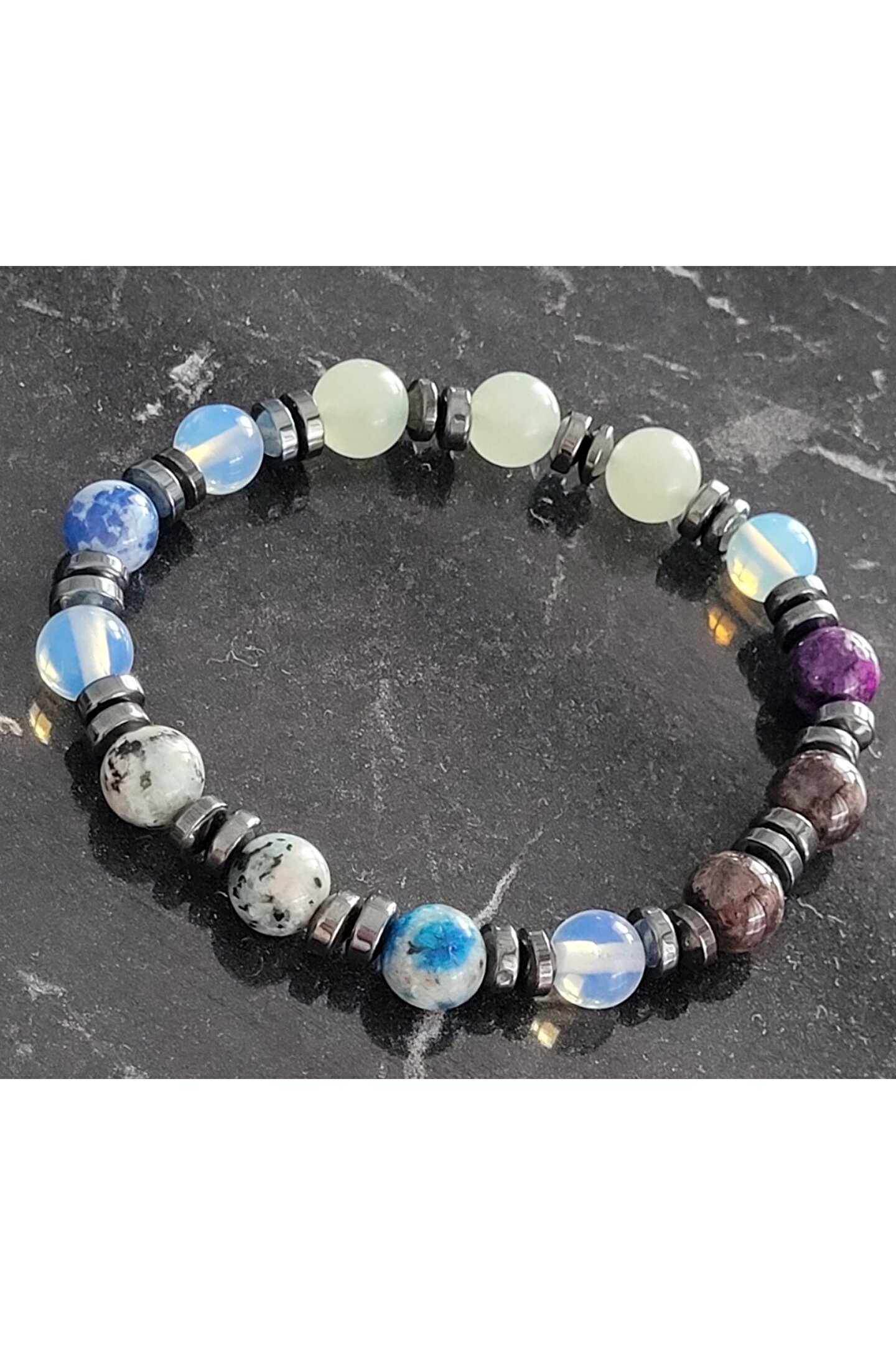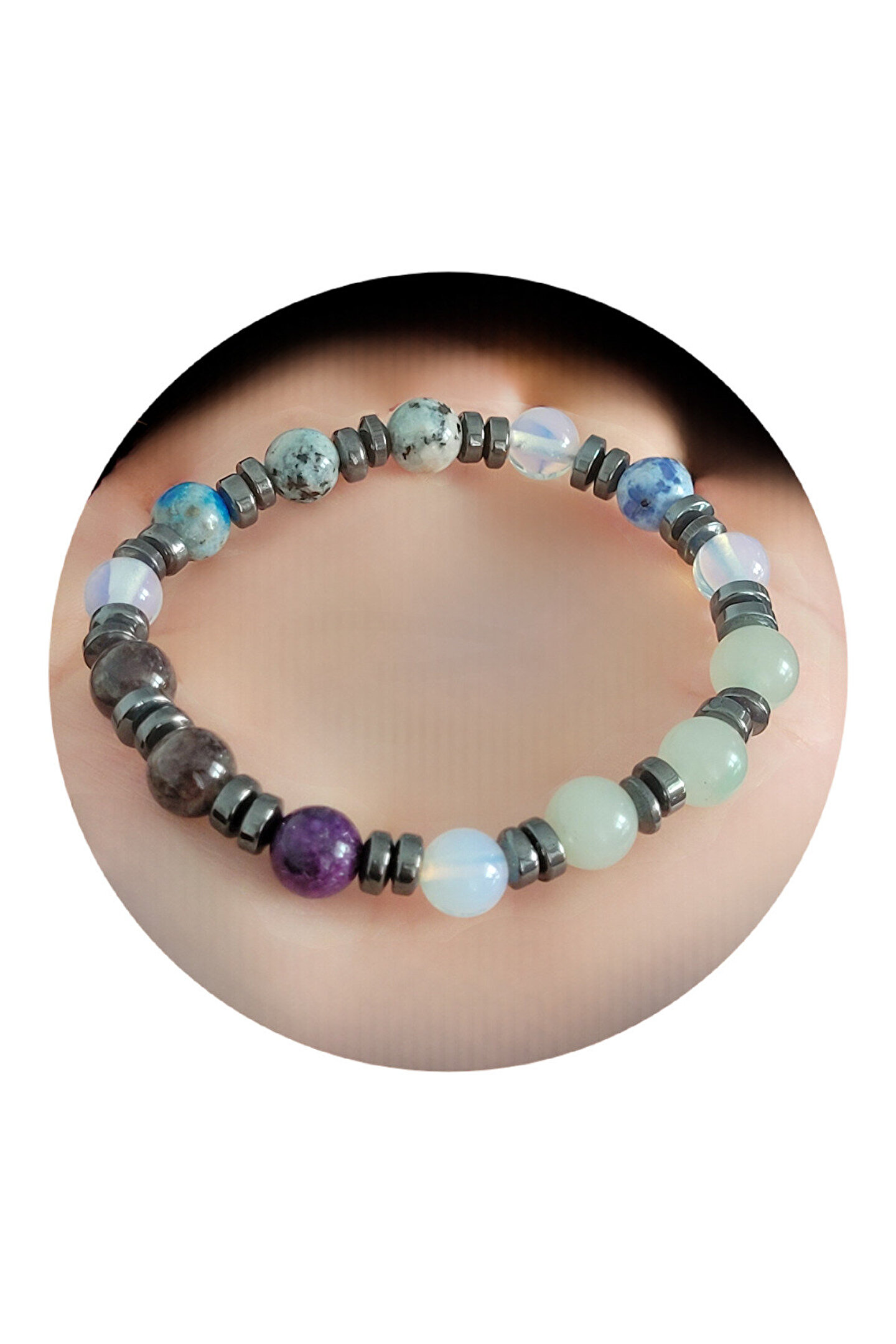 ??Doğal taşlar içerdiği mineraller sayesinde ve kendilerine has titreşimleri ile insan vücudunda olumlu etkilere sahiptirler. ??Taşlar bünyesinde bulundurduğu mineraller yardımı ile bedenimizde mineral bakımından eksiklikler var ise bunları tamamlamaya yardımcı olur. ??Vücudumuza yaydığı enerji ile çakraları dengelemeyi sağlarken ruh sağlığımızı korur, negatif enerjileri emip pozitif enerji yayar.??Değerli doğal taşların özellikleri ve faydalarını; %100 tedavi yöntemi olarak değil, sorunumuzun yada eksikliğimizin giderilmesinde yardımcı bir alternatif olarak değerlendirmeliyiz. ??Bu modelde esnek misina kullanılmıştır.??ürünlerimiz kendi tasarımımızdır. ??Doğaltaşlar kesim itibari ile renk ve şekil değişikliği gösterebilmektedir.