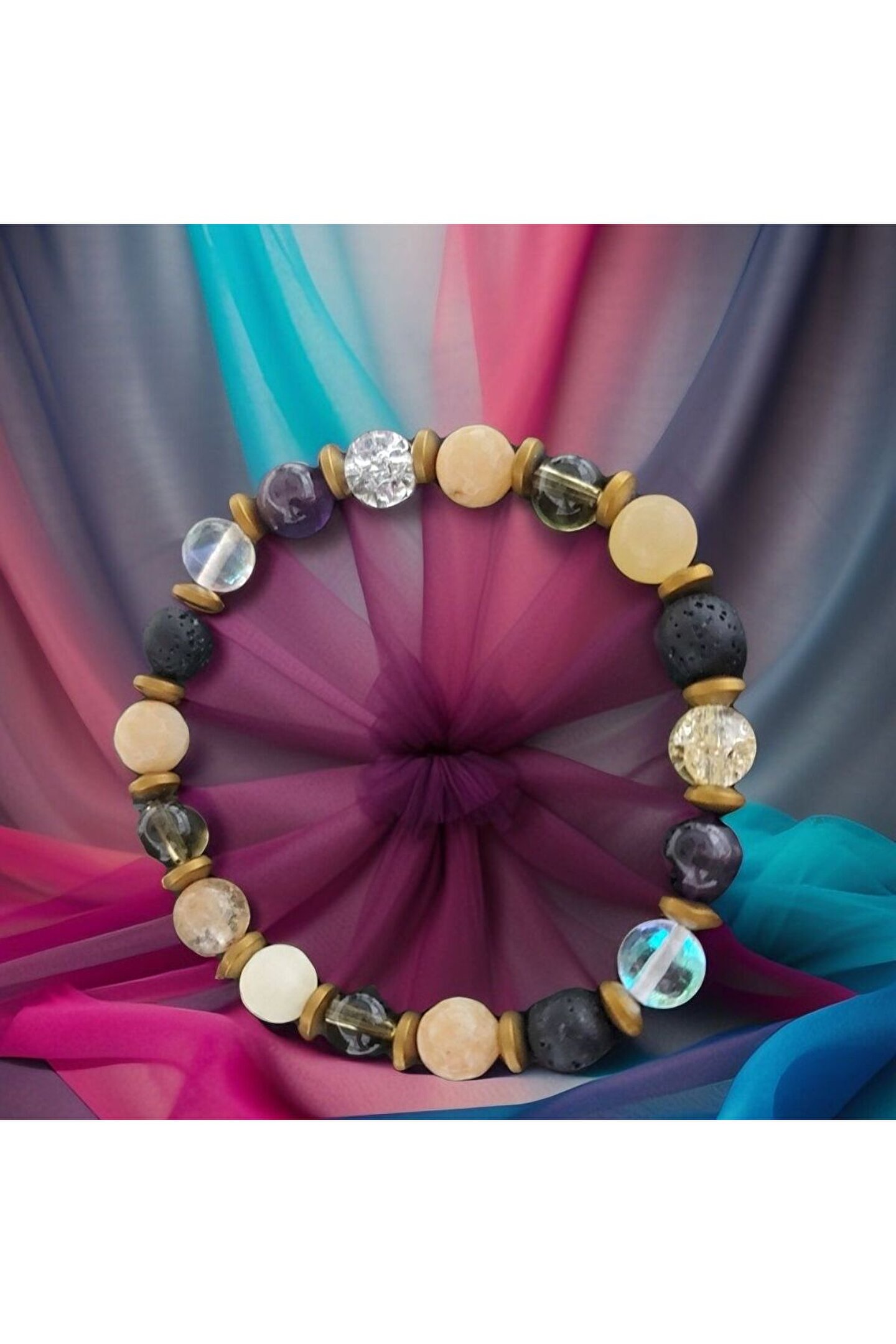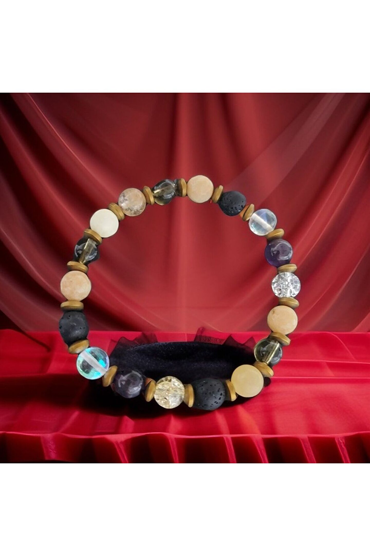 ??Doğal taşlar içerdiği mineraller sayesinde ve kendilerine has titreşimleri ile insan vücudunda olumlu etkilere sahiptirler. ??Taşlar bünyesinde bulundurduğu mineraller yardımı ile bedenimizde mineral bakımından eksiklikler var ise bunları tamamlamaya yardımcı olur. ??Vücudumuza yaydığı enerji ile çakraları dengelemeyi sağlarken ruh sağlığımızı korur, negatif enerjileri emip pozitif enerji yayar.??Değerli doğal taşların özellikleri ve faydalarını; %100 tedavi yöntemi olarak değil, sorunumuzun yada eksikliğimizin giderilmesinde yardımcı bir alternatif olarak değerlendirmeliyiz. ??Bu modelde esnek misina kullanılmıştır.ürünlerimiz kendi tasarımımızdır.