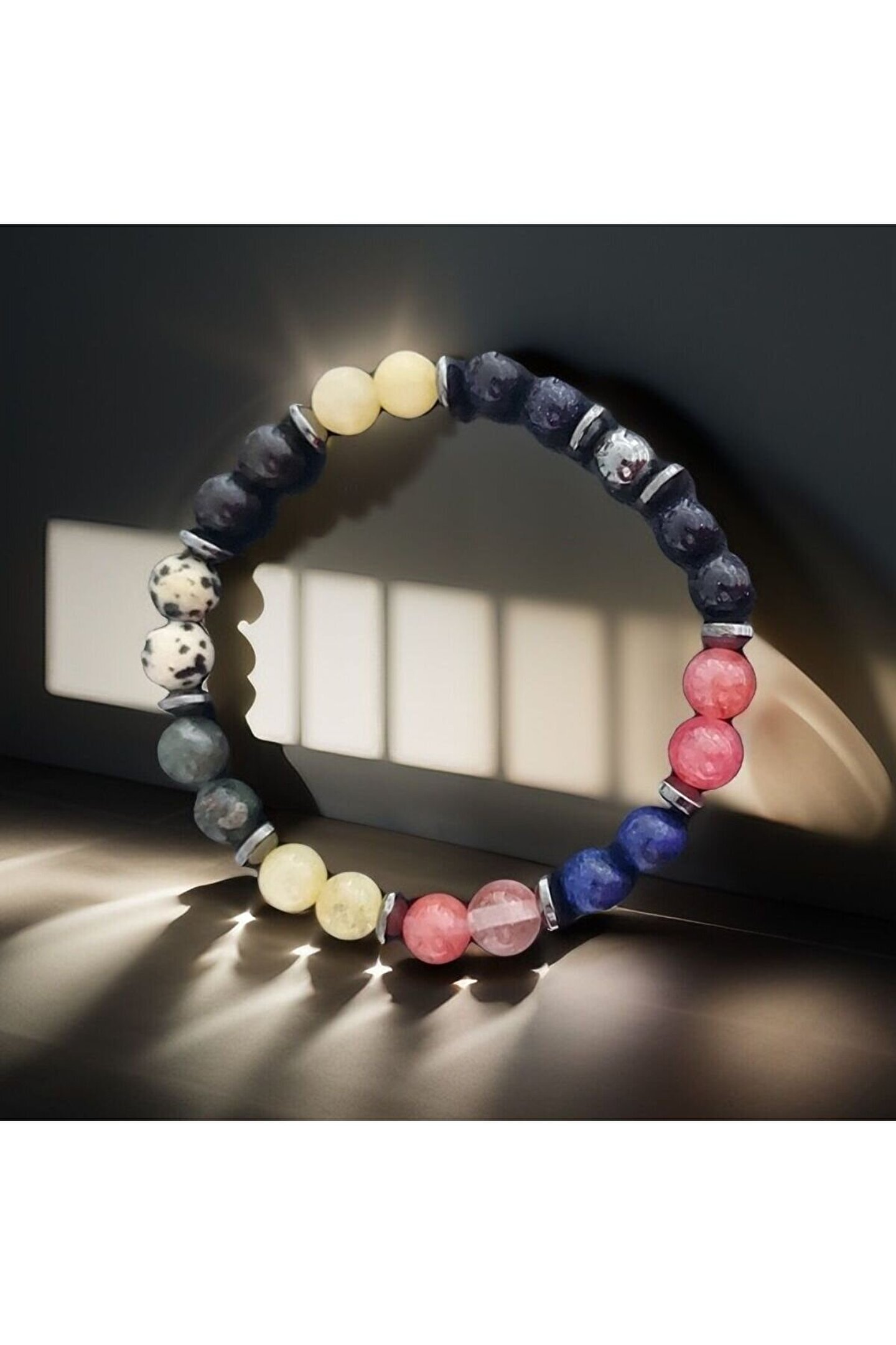 Doğal taşlar içerdiği mineraller sayesinde ve kendilerine has titreşimleri ile insan vücudunda olumlu etkilere sahiptirler. ??Taşlar bünyesinde bulundurduğu mineraller yardımı ile bedenimizde mineral bakımından eksiklikler var ise bunları tamamlamaya yardımcı olur. ??Vücudumuza yaydığı enerji ile çakraları dengelemeyi sağlarken ruh sağlığımızı korur, negatif enerjileri emip pozitif enerji yayar.??Değerli doğal taşların özellikleri ve faydalarını; %100 tedavi yöntemi olarak değil, yardımcı bir alternatif olarak değerlendirmeliyiz. ??Bu modelde esnek misina kullanılmıştır.??ürünlerimiz kendi tasarımımızdır. ??Doğaltaşlar kesim itibari ile renk ve şekil değişikliği gösterebilmektedir.
