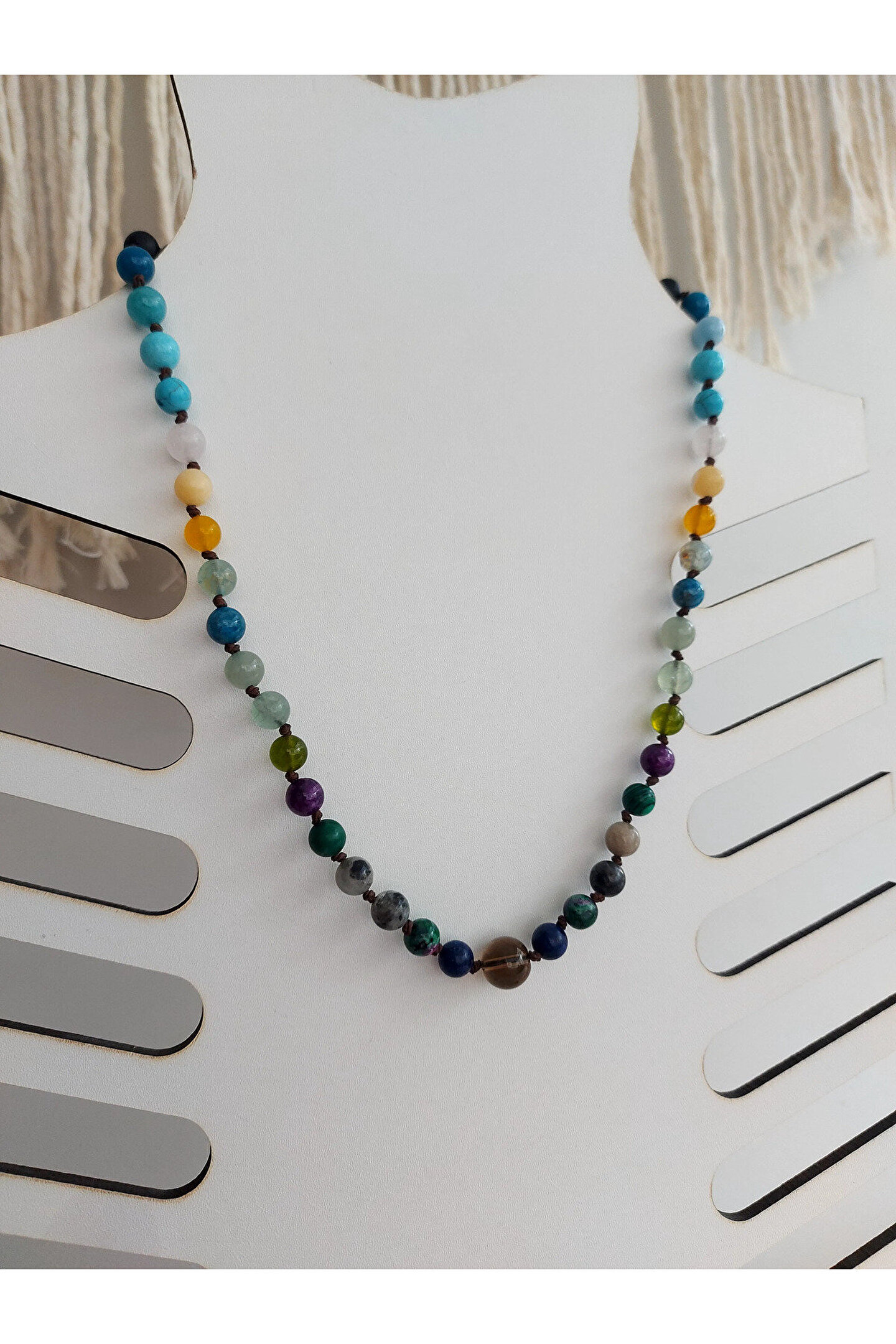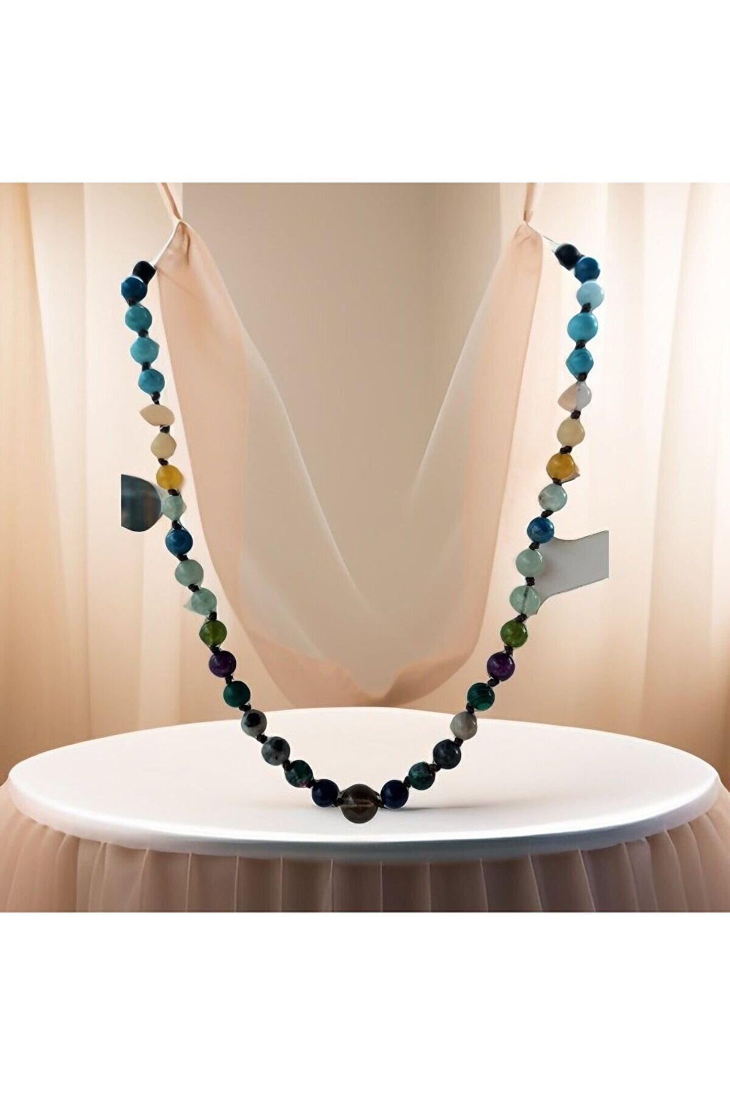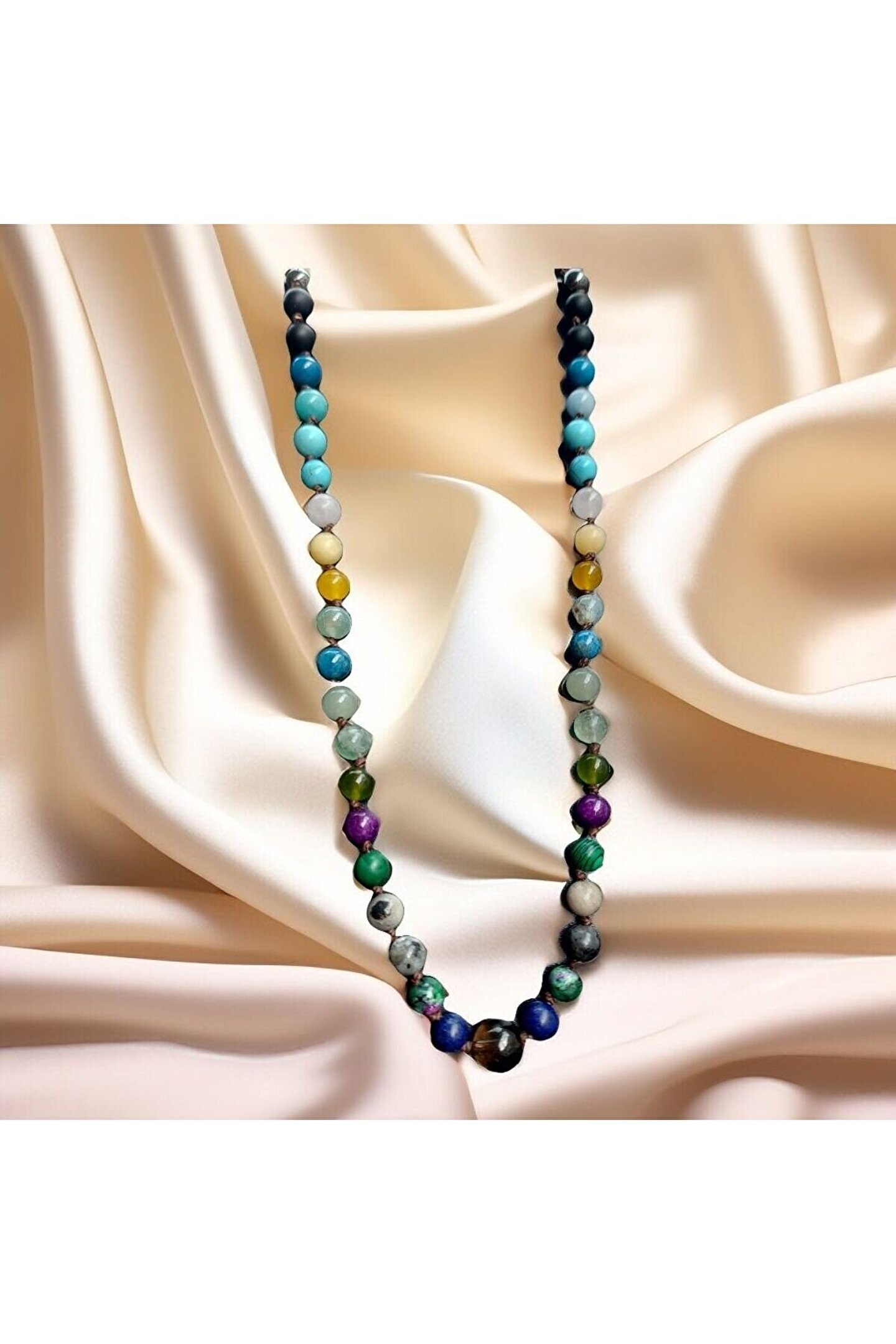 Doğal taşlar içerdiği mineraller sayesinde ve kendilerine has titreşimleri ile insan vücudunda olumlu etkilere sahiptirler. ??Taşlar bünyesinde bulundurduğu mineraller yardımı ile bedenimizde mineral bakımından eksiklikler var ise bunları tamamlamaya yardımcı olur. ??Vücudumuza yaydığı enerji ile çakraları dengelemeyi sağlarken ruh sağlığımızı korur, negatif enerjileri emip pozitif enerji yayar.??Değerli doğal taşların özellikleri ve faydalarını; %100 tedavi yöntemi olarak değil, yardımcı bir alternatif olarak değerlendirmeliyiz. ??Bu modelde esnek misina kullanılmıştır.??ürünlerimiz kendi tasarımımızdır. ??Doğaltaşlar kesim itibari ile renk ve şekil değişikliği gösterebilmektedir.