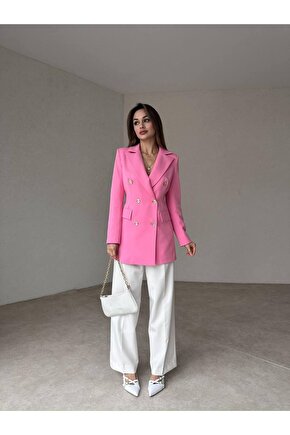lolembutik Kadın Çift Düğme Atlas Kumaş Ceket
