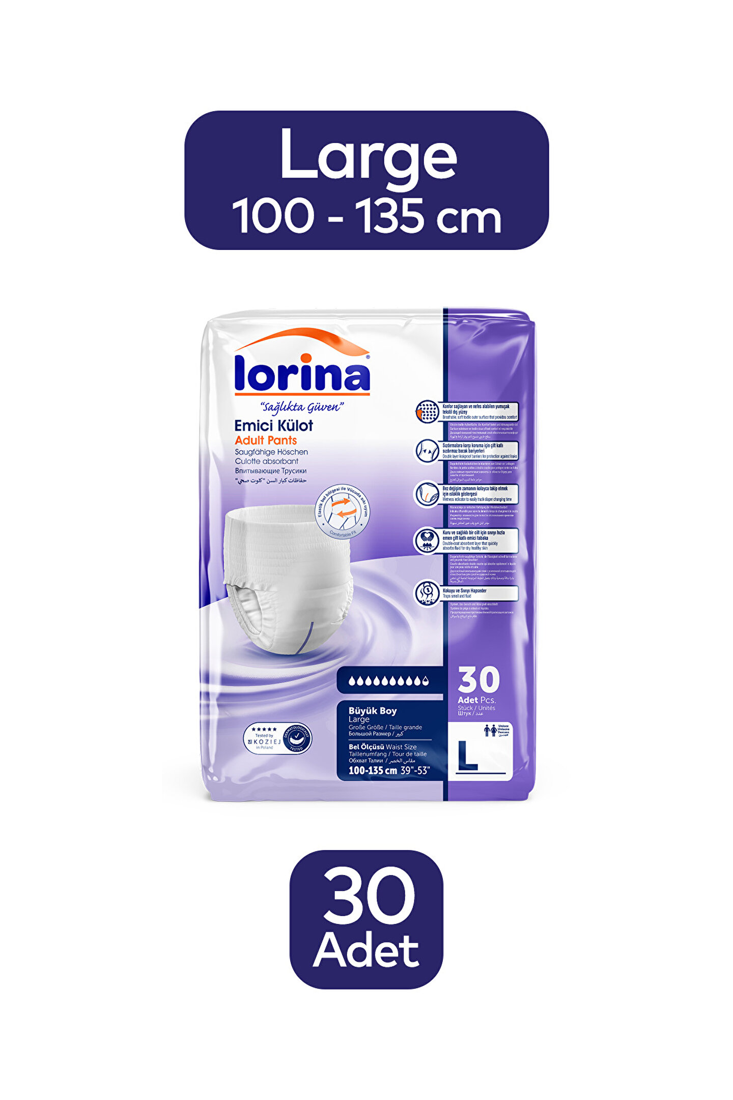Lorina Emici Külot Large 6 Damla; 1 kolide 1 paket mevcuttur. Paketlerinde 30 adet vardır ; Uyumlu kalça bedenleri: 100 cm – 135 cm ; Bu üründen en fazla 10 adet sipariş verilebilir. 10 adetin üzerindeki siparişleri Trendyol iptal etme hakkını saklı tutar. ; Kampanya fiyatından satılmak üzere 50 adetten fazla stok sunulmuştur. ; Bu ürün indirim kampanyasına dahil değildir. ; Bir ürün,birden fazla satıcı tarafından satılabilir. Birden fazla satıcı tarafındansatışa sunulan ürünlerin satıcıları ürün için belirledikleri fiyata, satıcıpuanlarına, teslimat statülerine, ürünlerdeki promosyonlara, kargonun bedavaolup olmamasına ve ürünlerin hızlı teslimat ile teslim edilip edilememesine,ürünlerin stok ve kategorileri bilgilerine göre sıralanmaktadır. ;