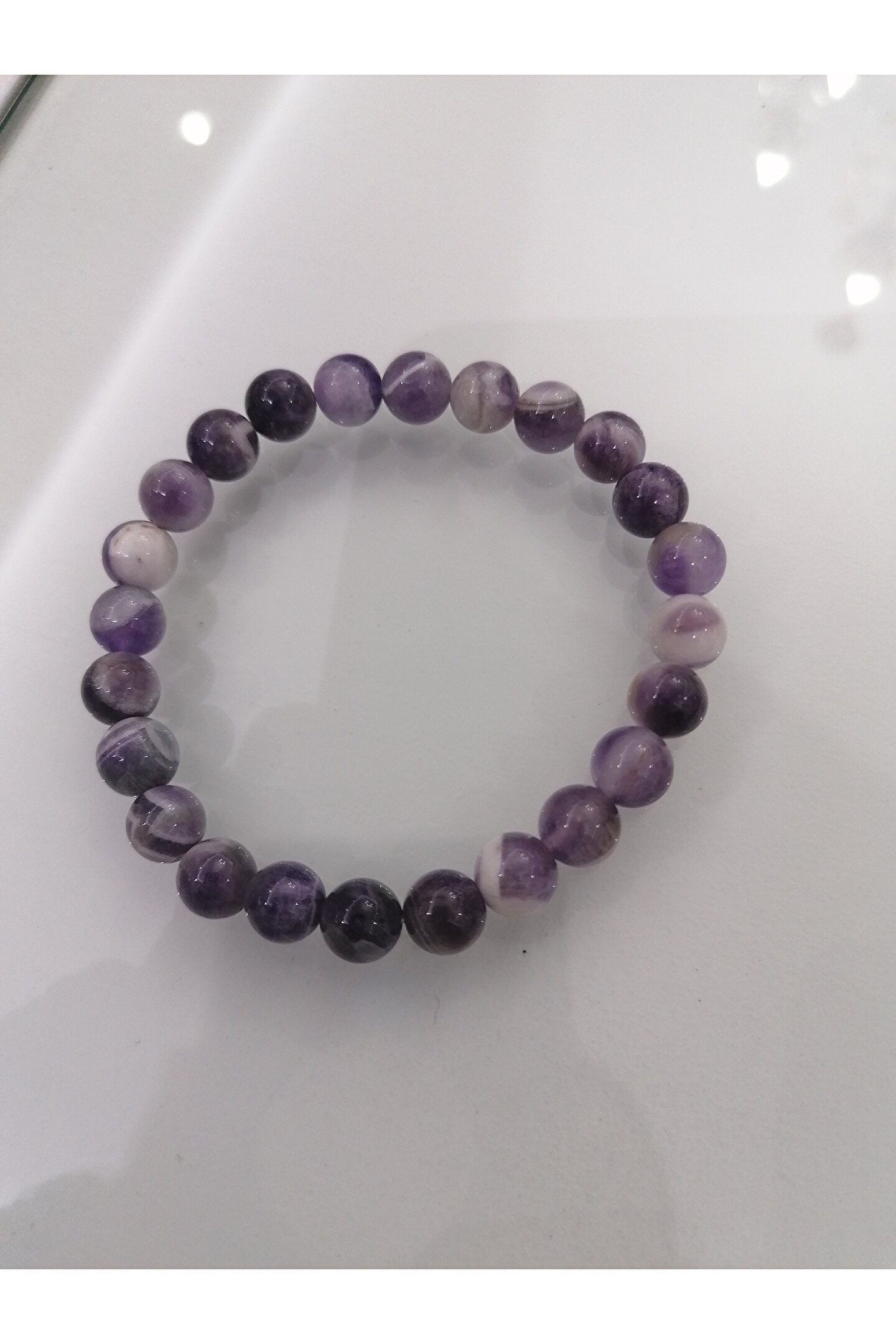 Doğal taş bileklik, şıklığınızı tamamlayacak zarif bir aksesuardır; Ametist taşı, 8mm küre kesim olarak tasarlanmıştır ve göz alıcı bir parlaklık sunar; Doğal taş materyali ile her bilek boyutuna uyum sağlar ve konforlu bir kullanım sunar; Bu bileklik, hem günlük kullanım hem de özel günler için ideal bir seçenektir;