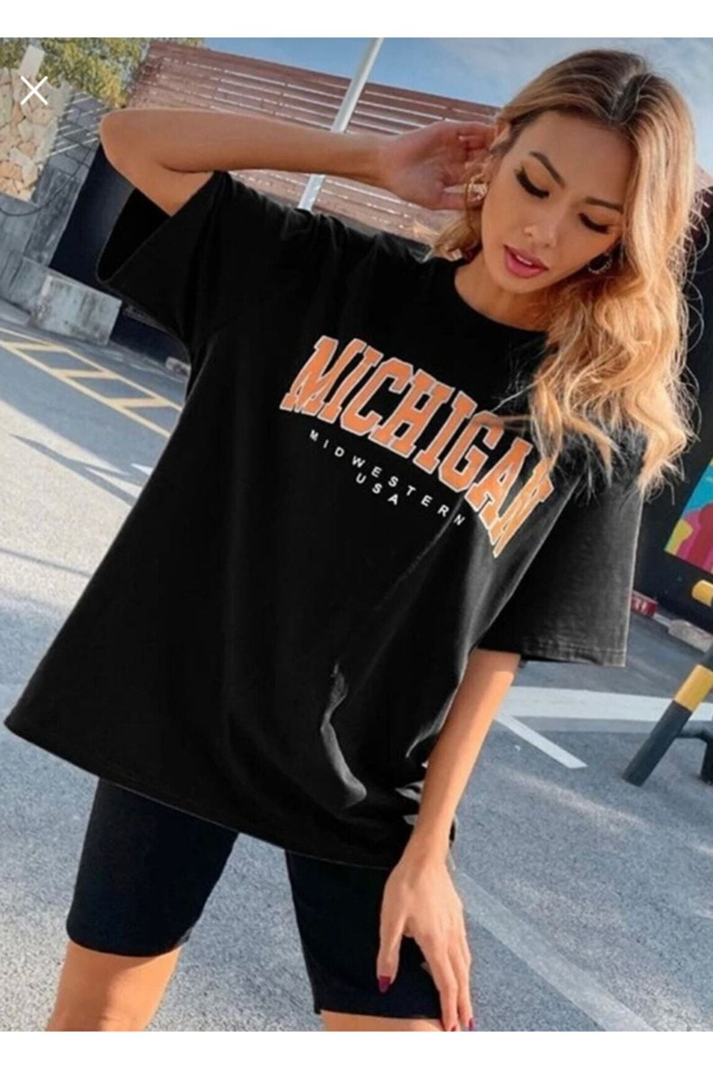 Oversize Unisex Siyah Mıchıgan Usa Tshirt