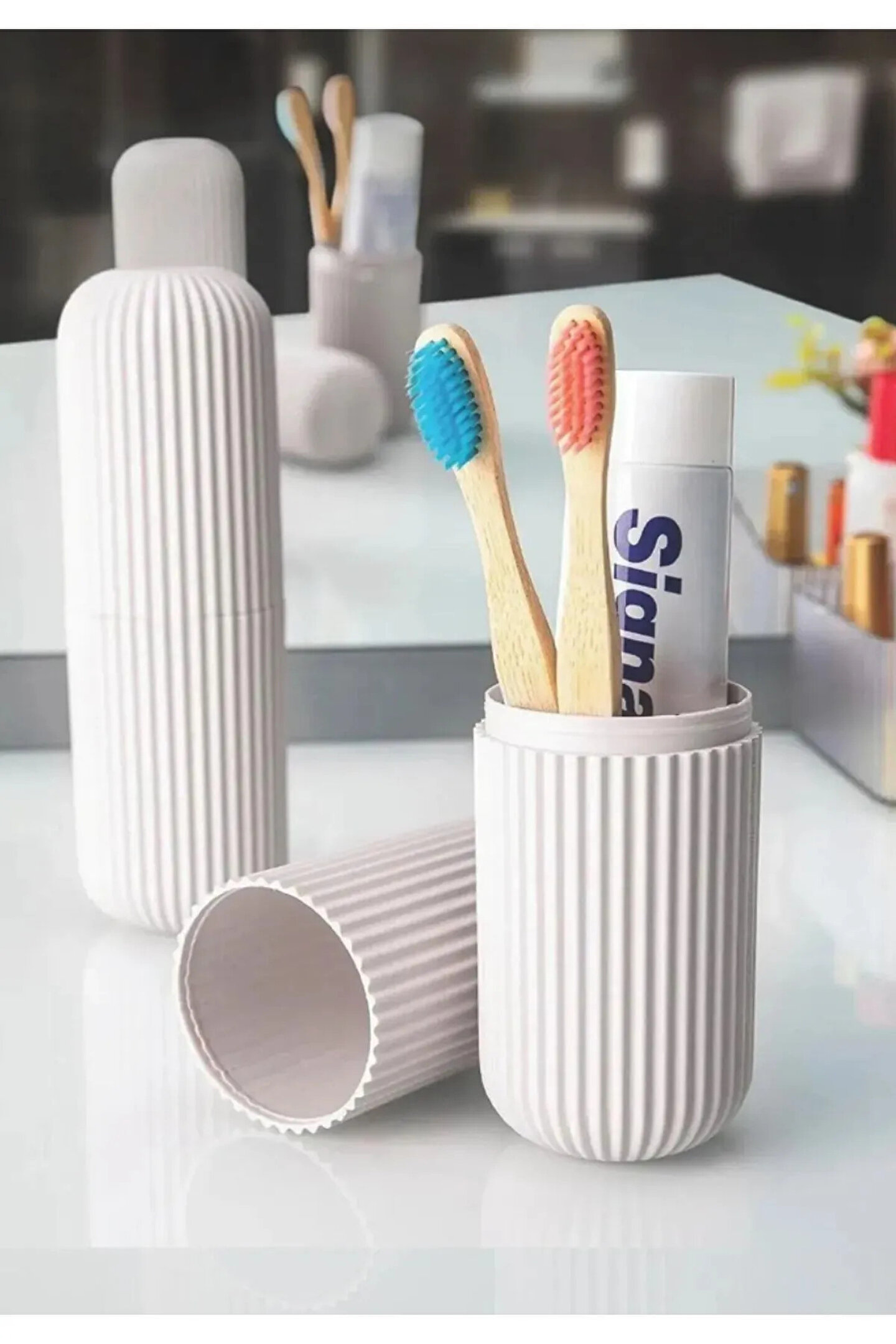 Seyahatlerinizde kişisel eşyalarınızı düzenli ve hijyenik bir şekilde saklayabileceğiniz Seyahat Tipi Taşıma Kabı, kompakt ve pratik tasarımıyla öne çıkıyor. Farklı renk seçenekleriyle sunulan bu çok amaçlı taşıma kabı, diş fırçası, diş macunu, tıraş bıçağı gibi günlük bakım eşyalarınızı güvenle saklayabileceğiniz bir çözüm sunar. Şık ve minimalist tasarımı sayesinde hem seyahatlerinizde hem de evde kullanabilirsiniz.