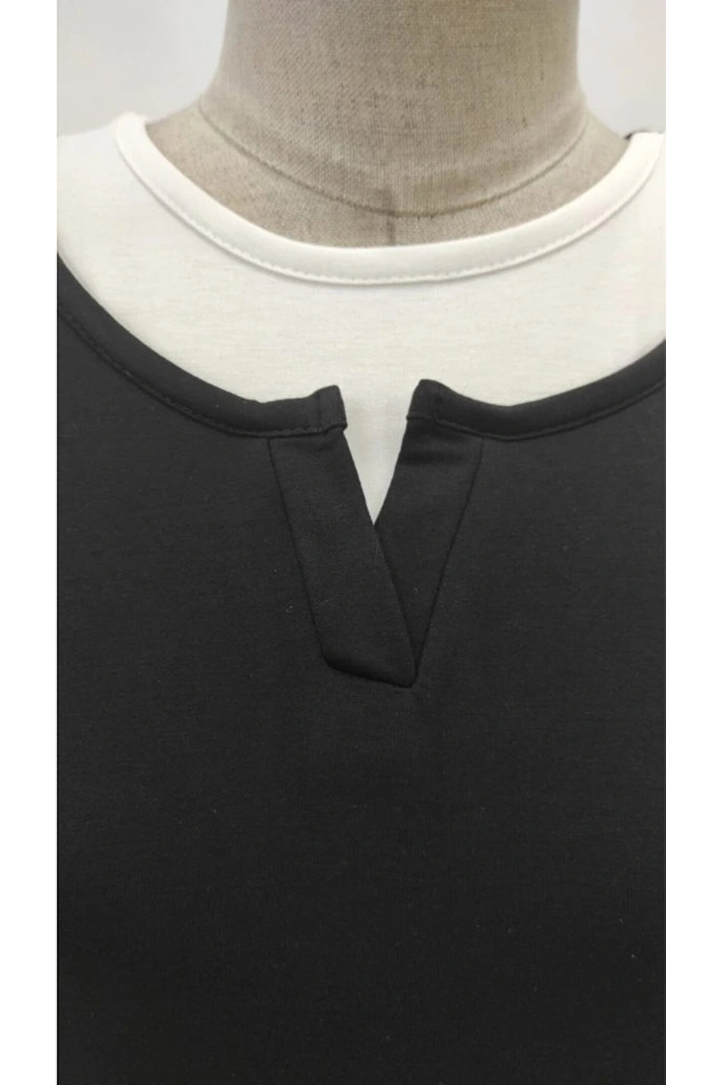Kadın Uzun Kollu V Yakalı çift Renkli Viskon Iki Iplik Bluz