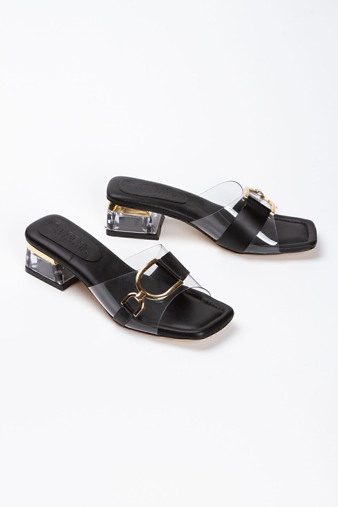 Kadın 4 cm Şık Tarz Suni Deri Siyah Şeffaf Kısa Topuklu Terlik
