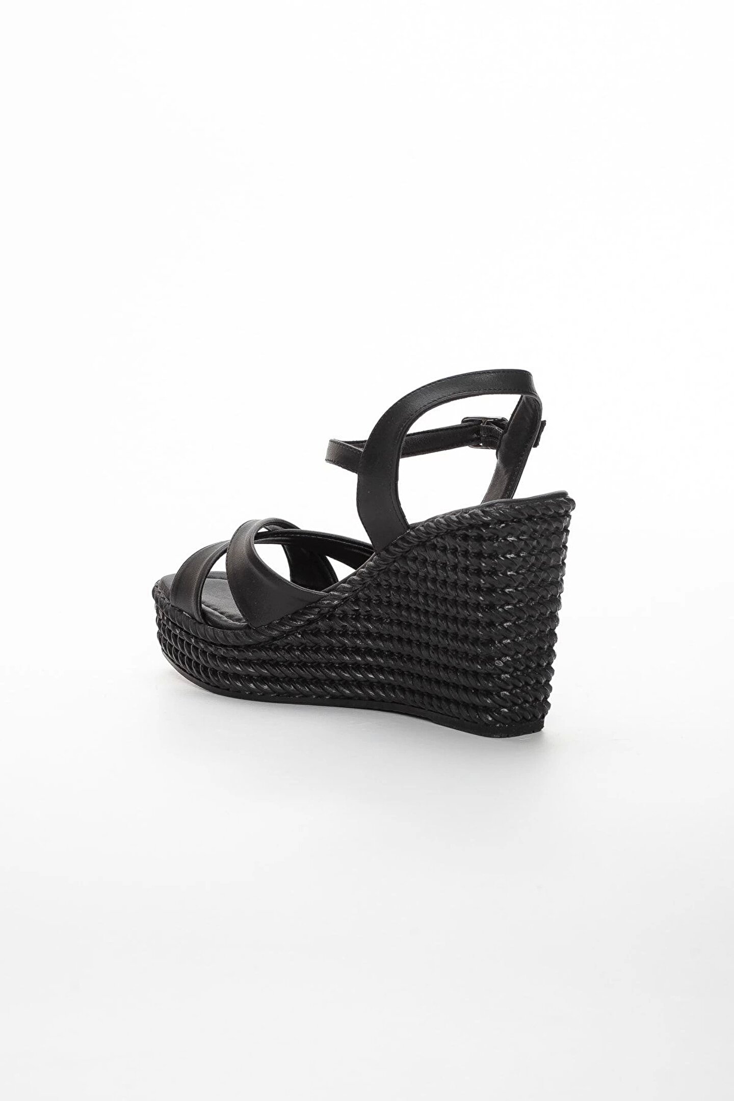 Suni deri malzemesi ile üretilmiş, uzun ömürlü ve dayanıklı kullanım sunar; İç tabanında da suni deri kullanılarak ayak konforu ön planda tutulmuştur; Saya kısmında da kaliteli suni deri tercih edilerek şık bir görünüm ve ekstra dayanıklılık sağlanmıştır; Plaj giyimi için ideal olan bu sandalet, rahatlığı ve stili bir arada sunar; 10 cm ve üzeri yüksek topuk boyu ile zarif bir duruş kazandırırken, dolgu topuklu tasarımı sayesinde dengeli bir yürüyüş imkanı tanır; Astarında da suni deri kullanılarak ayak sağlığını destekleyen bir yapı oluşturulmuştur;