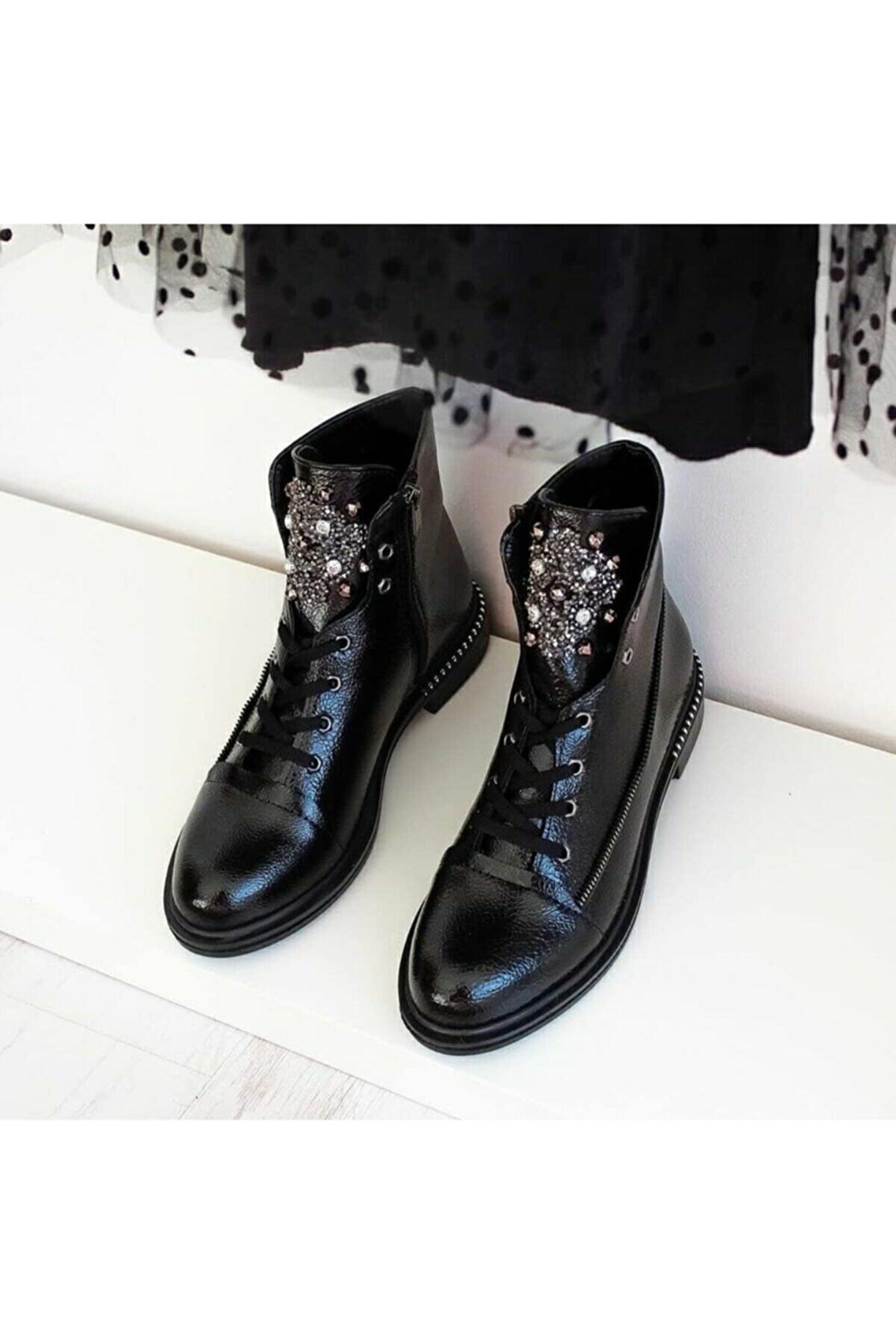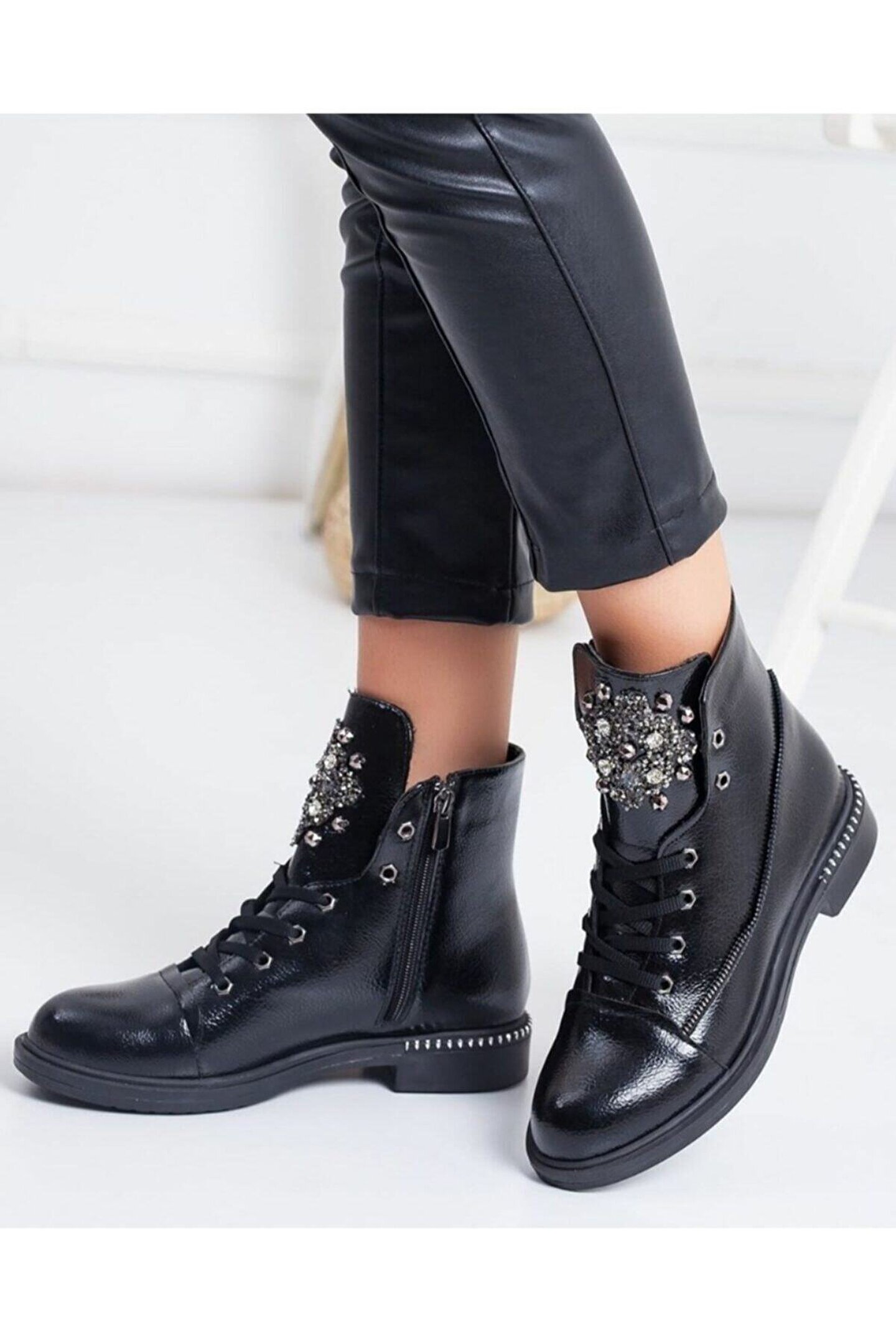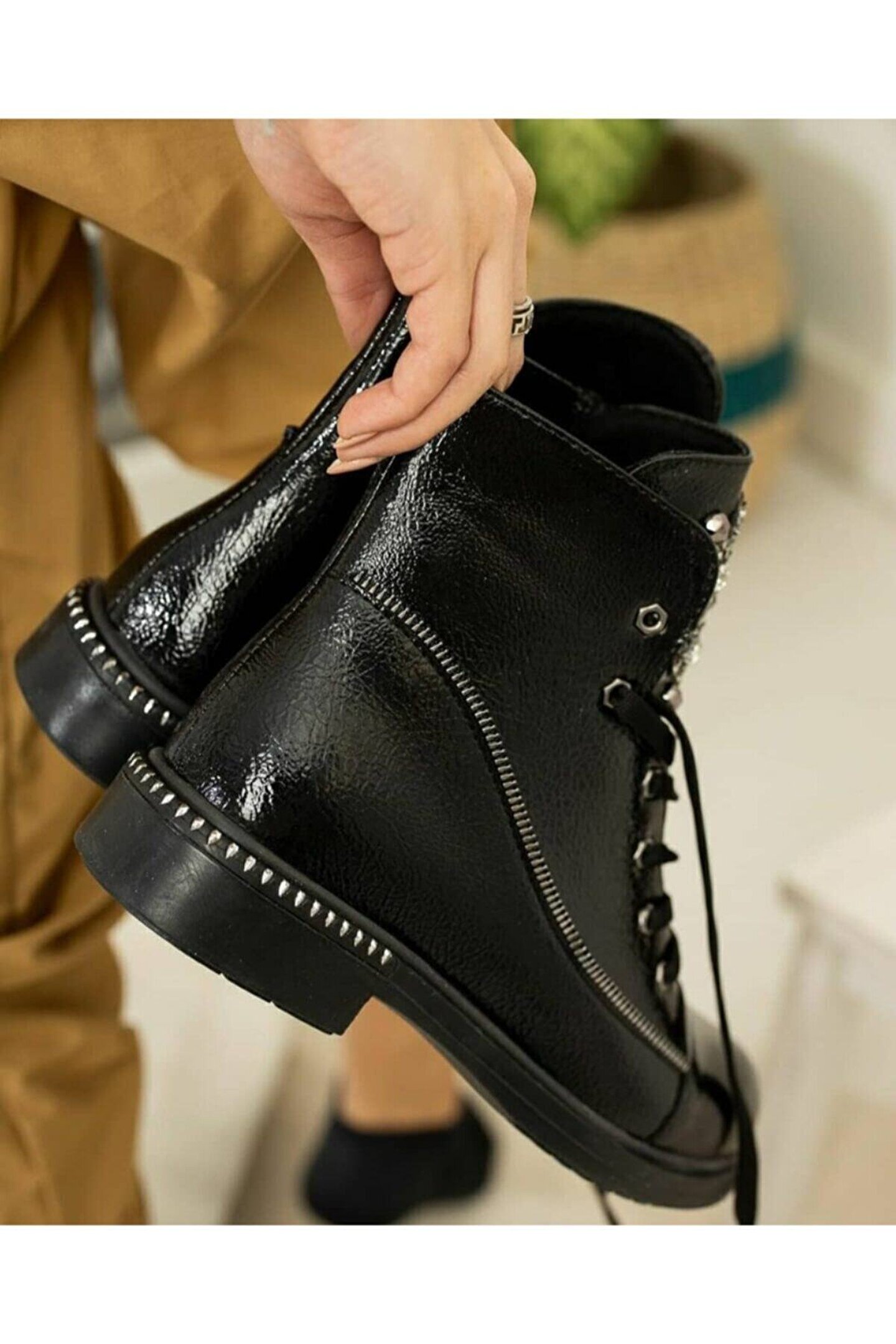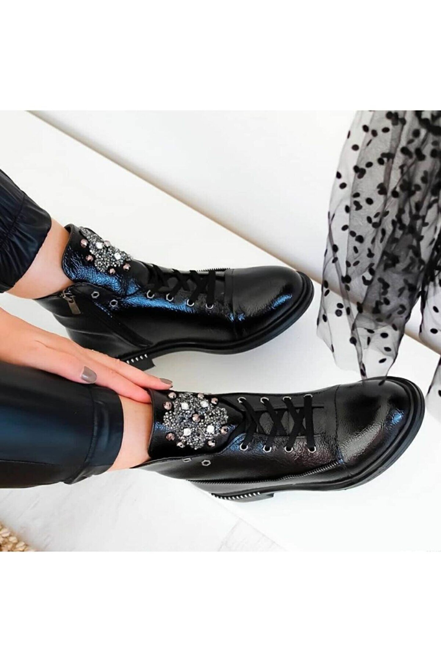 Suni deri dış materyali ile şıklığı ve dayanıklılığı bir arada sunar, uzun süreli kullanım için idealdir; Bağcıklı tasarımı sayesinde ayaklarınıza mükemmel uyum sağlar ve kişisel konforunuzu artırır; İç tabanında kullanılan tekstil materyali, ayaklarınızın gün boyu rahat etmesini sağlar; Günlük kullanım için tasarlanmış olup, hem şıklığı hem de rahatlığı bir arada sunar; 1 ila 4 cm arasındaki kısa topuk boyu ile gün içindeki konforunuzdan ödün vermeden zarif bir duruş sergiler; Kauçuk taban materyali sayesinde kaymazlık özelliği ile güvenli adımlar atmanızı sağlar; Desenli yapısıyla göz alıcı bir görünüm kazandırırken, bot kalıbı modern ve feminen çizgiler taşır; Saya materyali olarak da suni deriden üretilmiştir; böylece botunuzun estetik bütünlüğü korunurken dayanıklılık da ön planda tutulur; Düz topuklu tasarımıyla stabiliteyi arttırarak yürüyüş konforunu maksimize eder; Astar;
